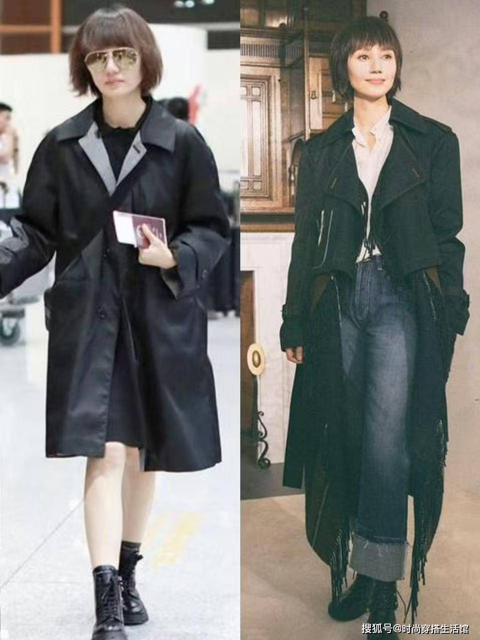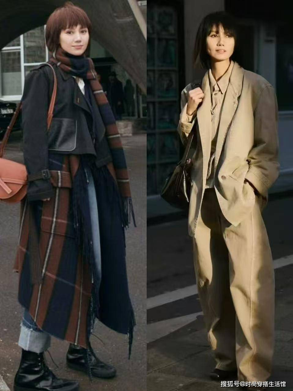 其次就是秋天穿风衣搭配打底裤还有一个“致命伤”,那就是整体造型会缺乏平衡的状态,毕竟风衣的风格是随性慵懒风,选择搭配打底裤的话就会很容易出现“拖后腿”,从而隐藏风衣带来的优势,同时还会放大土气感。尤其是廓形宽松的风衣搭配上紧身打底裤,分分钟就呈现了“头重脚轻”的现象,强行将它们组合在一起的话,视觉上还会拉低整体气质。