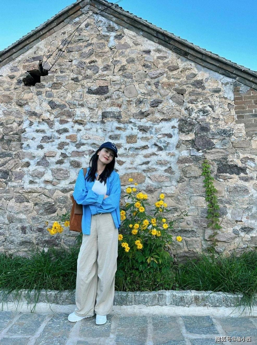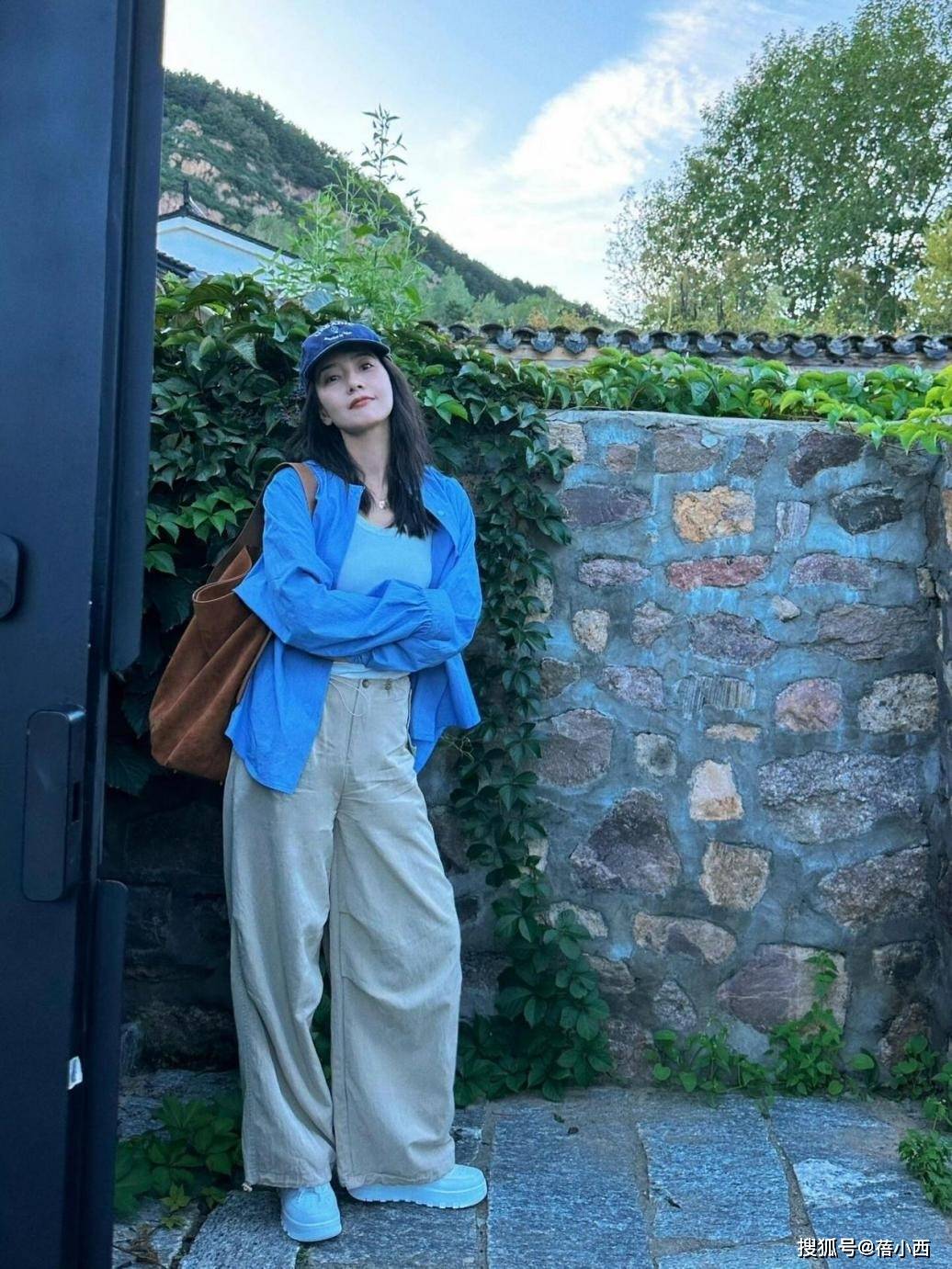 女神身上这件蓝衬衫面料不厚重,夏天穿的话可防止手臂被晒伤、晒黑,初秋穿则有一定保暖性。衬衫衣长刚好盖住臀部,敞开穿会给人干练利落感,这种衣长娇小女生驾驭也不难。现在很多女性喜好休闲风穿搭,不管是上衣还是裤子都略带松弛,遮肉的同时让身体每一寸肌肤都能畅快呼吸。