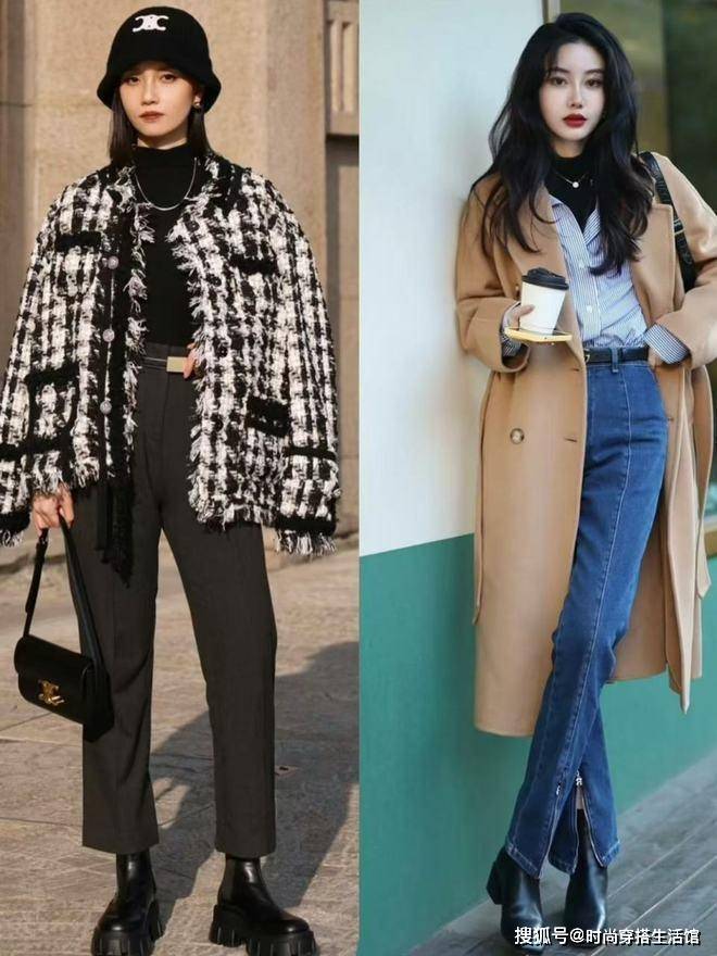 秋天我们穿阔腿裤和短靴的时候要注意塑造出腰线,像是秋冬季节最常见的就是上短下长的搭配,选择根据分段式的穿搭去调节我们的身材比例,或者是选择上衣塞裤腰的方式,脚上搭配一双短靴,能够完美的改善我们的身材比例。