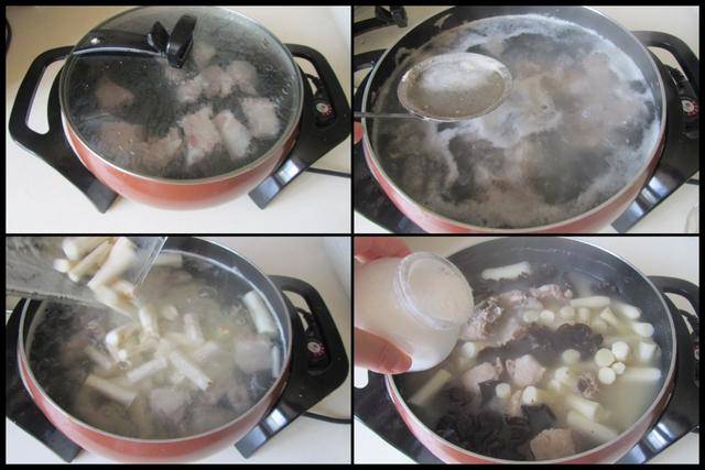 制作过程: 提前将排骨用冷水浸泡一段时间,去除血水; 黑木耳用冷水泡软; 山药去皮后切成小段备用。 烧锅水,将泡过的排骨冷水下锅炖煮,大火煮开后撇去浮沫,加入少许姜片,转为小火加盖炖煮20分钟,再加入准备好的山药段和泡好的木耳放进锅中继续炖煮10分钟后,加入少许盐和胡椒粉调味, 盛入钵中撒上葱花即可。