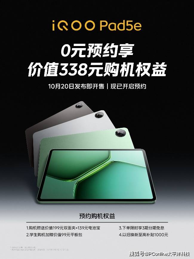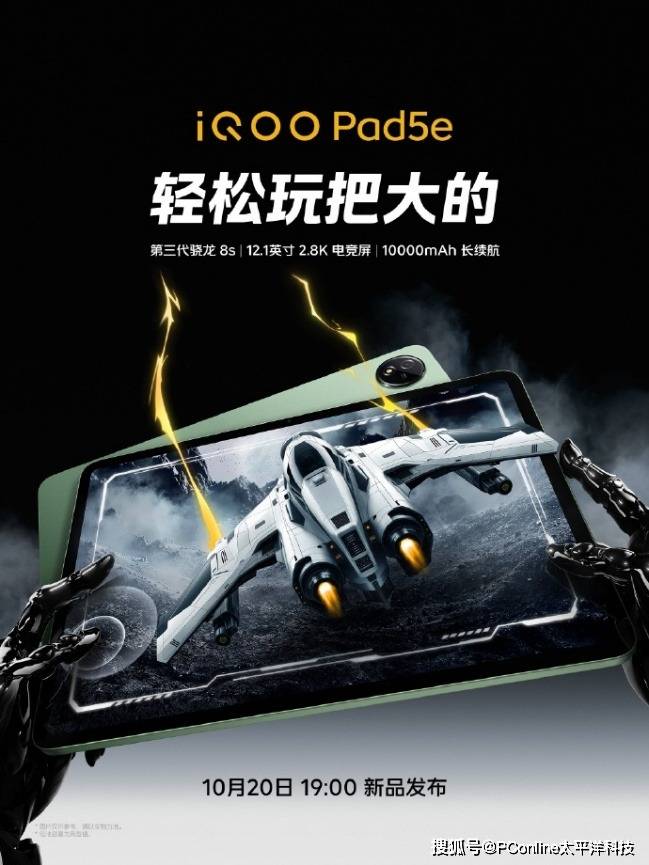玩家的超神装备,iQOO全家桶新品 — iQOO Pad5e、iQOO WATCH GT 2 和iQOO TWS S 也将在 10 月 20 日(周一)发布会同场亮相,现已开启预约,超值权益等你来拿。iQOO Pad5e 具备第三代骁龙8s,12.1英寸2.8K电竞屏,让你轻松玩把大的;iQOO WATCH GT 2 配备 2.07 英寸超亮全景屏和全新电竞模式,腕上方寸助你时刻高能;iQOO TWS S 拥有 60dB 旗舰降噪和 42ms 全链路游戏低延迟,游戏世界亦能听声制胜。