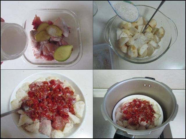 推荐菜谱【 剁椒鸡腿肉蒸芋头】 原料: 芋头 琵琶鸡腿剁椒 姜片 料酒生抽 葱花 盐