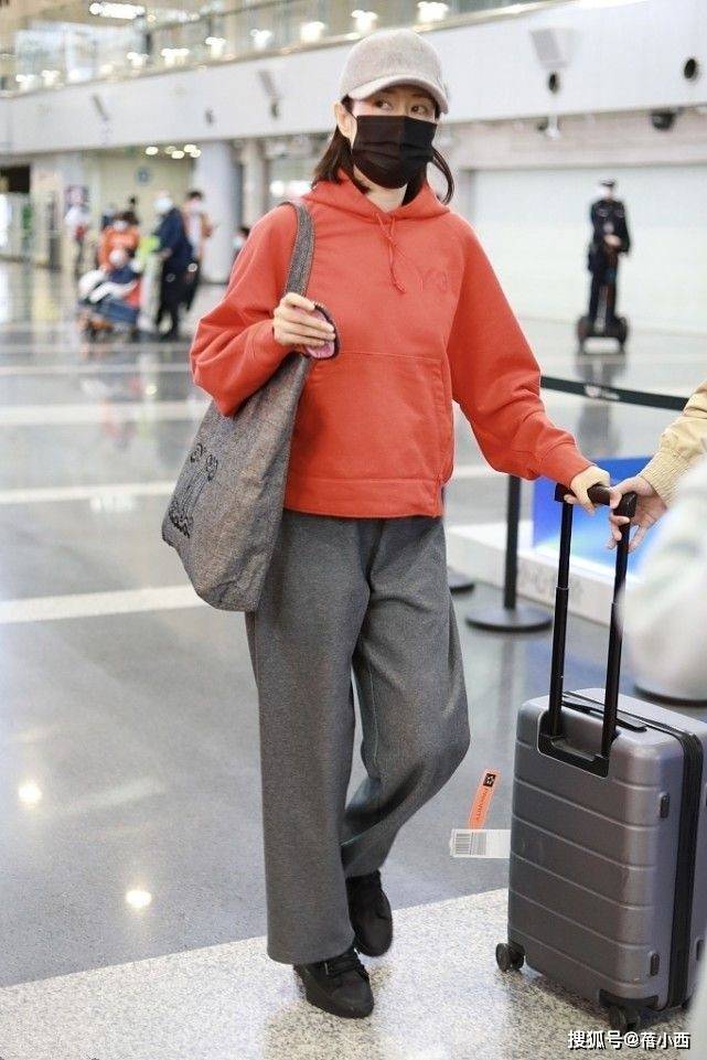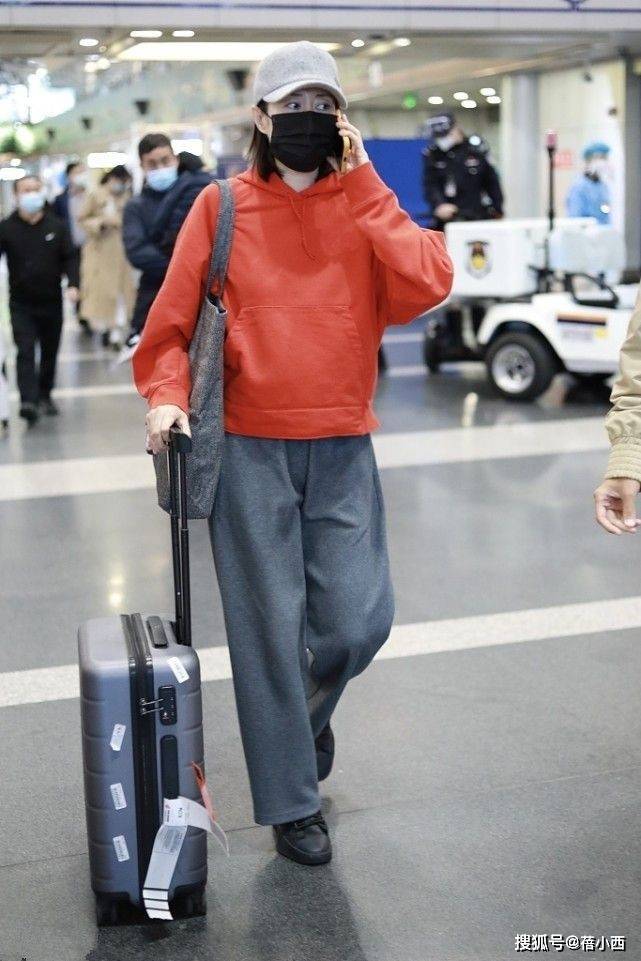 在机场熙攘的人流中,刘敏涛的这一身搭配也格外吸睛,她上身选了件亮眼的红色连帽卫衣,那红色像一团跳动的火焰,瞬间打破机场的沉闷,卫衣是宽松的版型,穿着自在又随性,连帽设计还带着点青春活力,仿佛把休闲与舒适都穿在了身上。