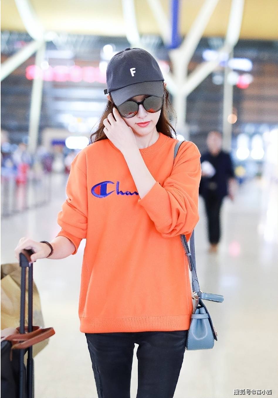 橘色卫衣在人群中十分吸睛,身上这件没有帽子作为装饰,小圆领是秋季很受欢迎的领型,因为露肤度偏低。生活中,不管是哪个年龄段女性,都能尝试“上宽下紧”的穿衣技巧。上衣是宽松版型,则可很好地隐藏宽肩、腰部肉肉等问题,腿上是修身款裤子的话,则拉长双腿线条。进而不用特意穿高跟鞋,都能在视觉上增高几厘米。