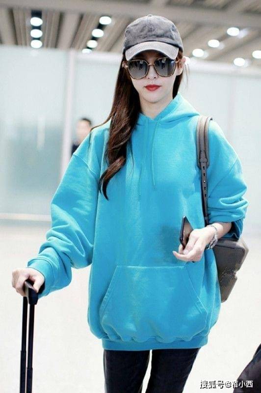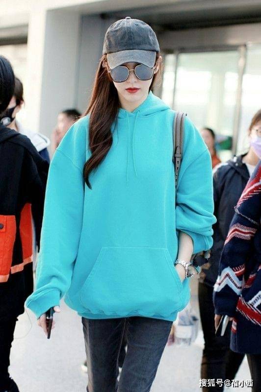 蓝卫衣驾驭难度低,不挑穿着者肤色。大口袋是通的,秋天可将手放里边取暖,也可容纳不少小东西,比如头绳、发卡、小镜子等。卫衣的衣摆长度过了臀部,所以小个子想穿的话,就要避开阔腿裤,容易压身高。