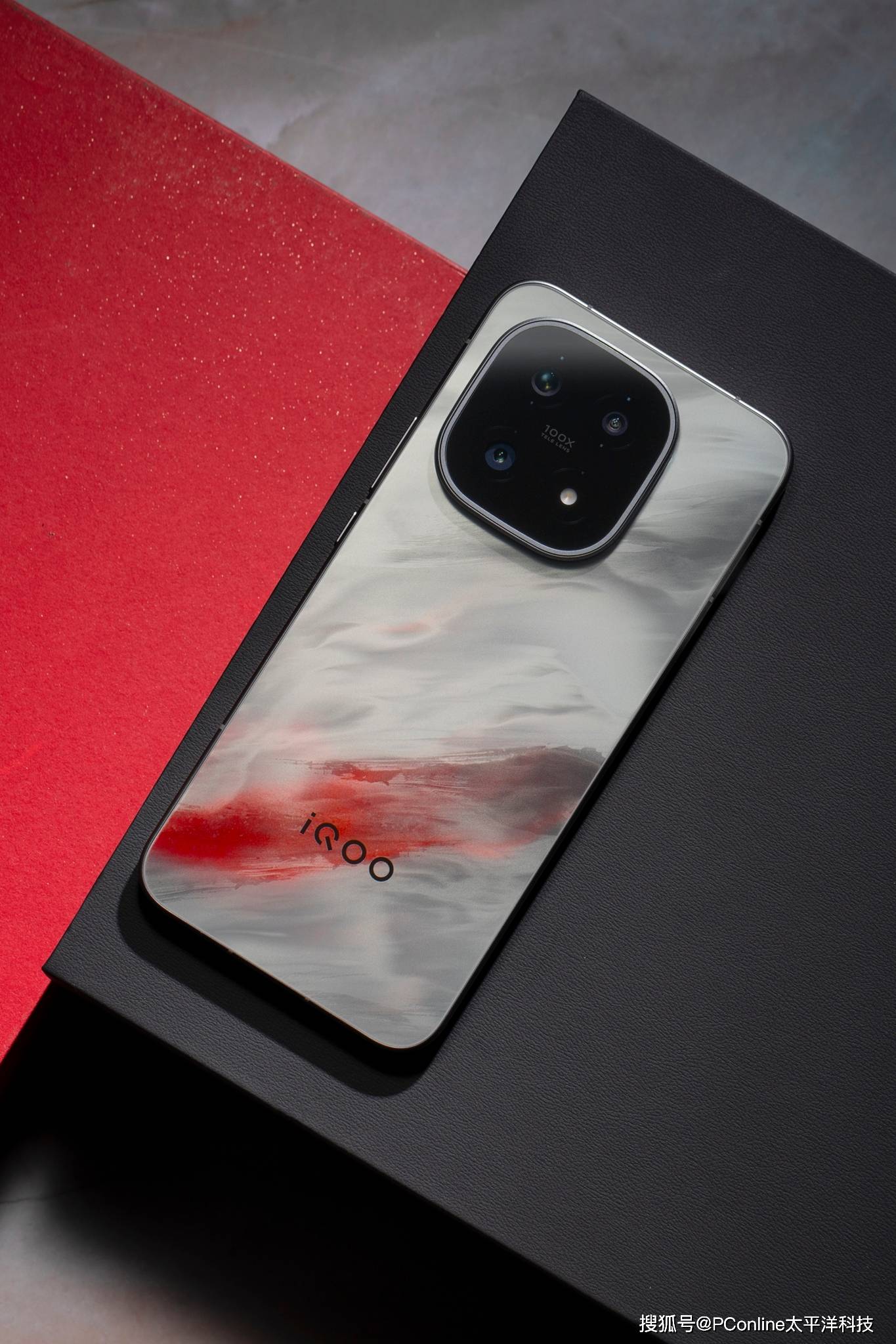 这山河,是一轴酣畅淋漓的泼墨画卷。群山如黛,云海沉浮,藏着天地初开的沉寂。陡然间,一道赤霞如剑出鞘,凌厉地划破这混沌。它并非点缀,而是画卷的铮铮铁骨,是这水墨江山最炽烈与决绝的灵魂;静穆与炽烈结合,书写着江湖上的风雨。这并非止于观感的写意,更是iQOO 15性能哲学的具象表达;它的性能,同这画卷一般,追求的是酣畅淋漓的驾驭快意。跨代领先,是它改写规则的气魄——算力如赤霞出鞘,撕裂一切性能束缚,将最复杂的游戏光影运算,化为掌上的写意笔墨。
