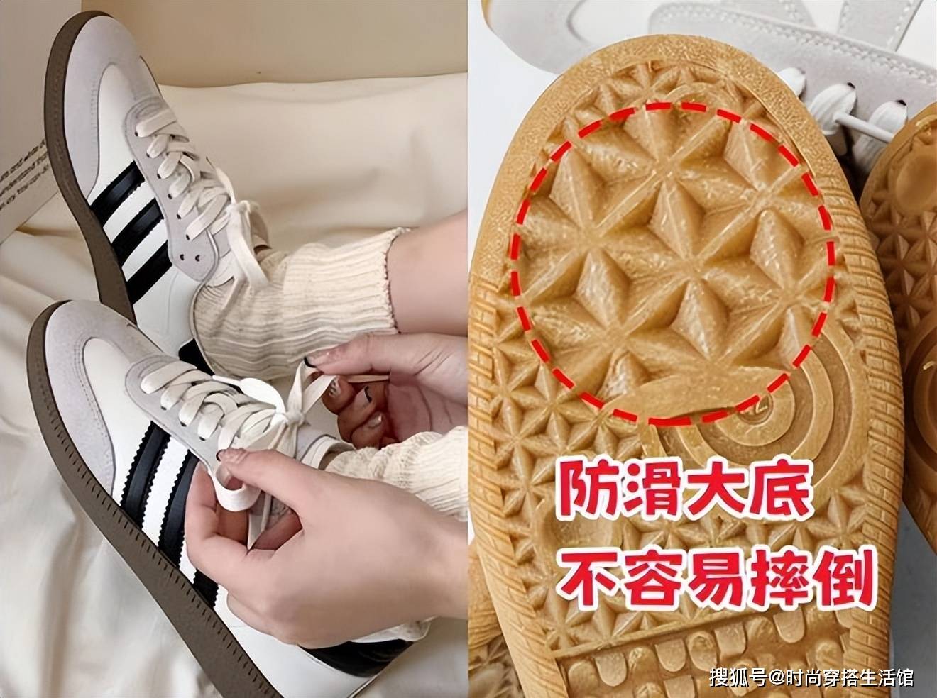 秋天我们挑选德训鞋的时候首先要关键的就是鞋底材质的选择,其实穿过这款鞋子的人都知道,德训鞋采用的是橡胶牛津鞋底,抓地力和耐磨性非常高,完全不用担心长时间行走或者下雨天会摔跤,其次就是德训鞋鞋面采用的是拼接皮革鞋面,非常的经典和百搭。