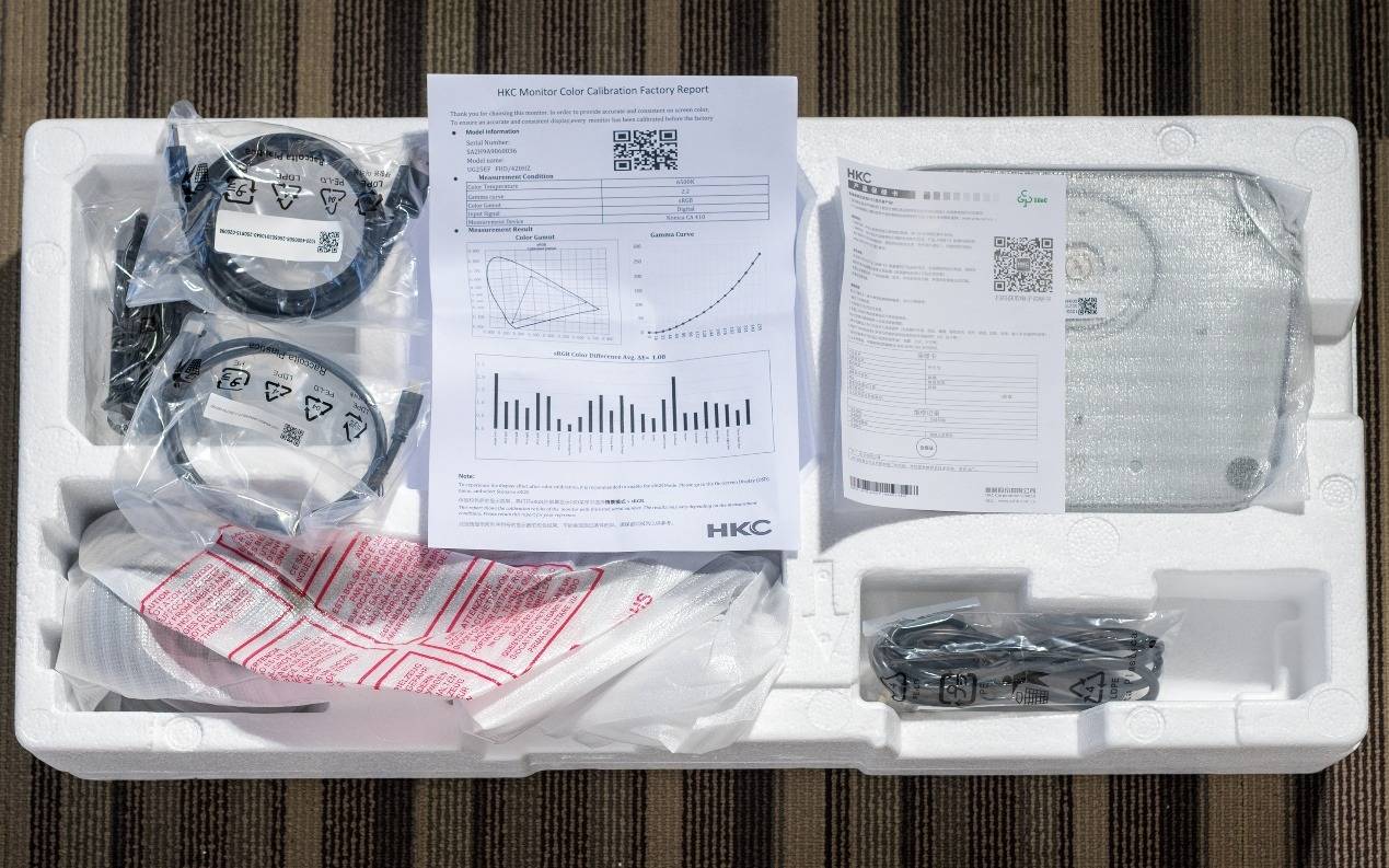 打开包装后,就可以看到HKC UG25EF在包装内部使用了泡沫塑料作为缓冲材料,可以有效保护产品在运输过程中的安全。
