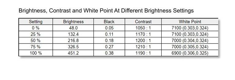 在亮度测试中,HKC UG25EF的表现相当出色,最高亮度可达 451.2 nit(100% 亮度设置下)。如此高的亮度上限确保了即使在明亮的环境下,显示器也能提供清晰的显示效果。