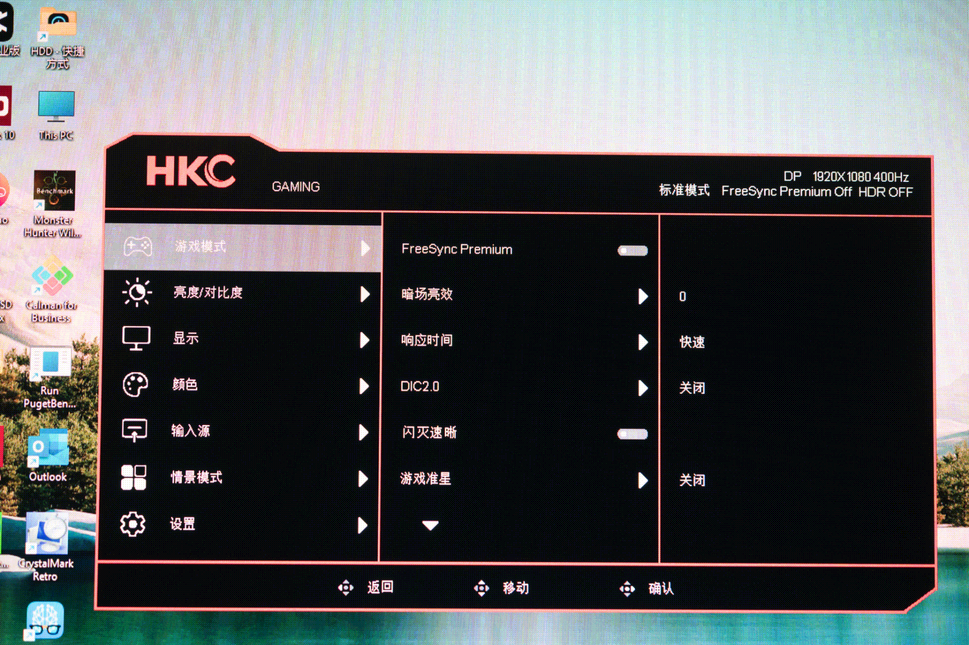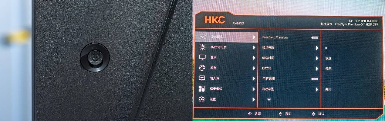 总体而言,HKC UG25EF的OSD菜单界面简洁功能齐全,玩家可以快速上手,功能深度也足以满足对显示器控制有较高要求的游戏玩家。