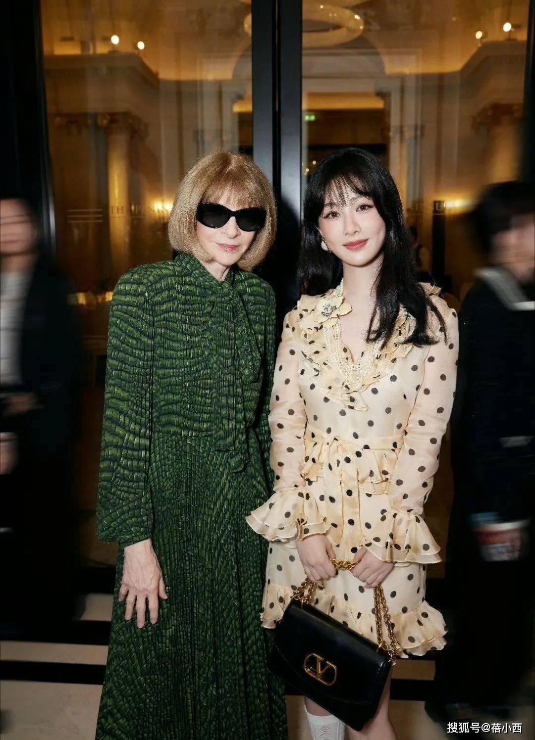 搭配上,杨紫也花了不少心思,她手持一款黑色的手提包,包身的金色品牌标识在灯光下闪耀着精致的光芒,与波点裙形成色彩上的呼应与对比,既提升了造型的精致度,又让整体搭配更具层次感。脚上的白色长筒袜更是点睛之笔,白色与裙身的米色相衬,和谐又清新,高跟凉鞋则为造型注入了一丝妩媚的气息。