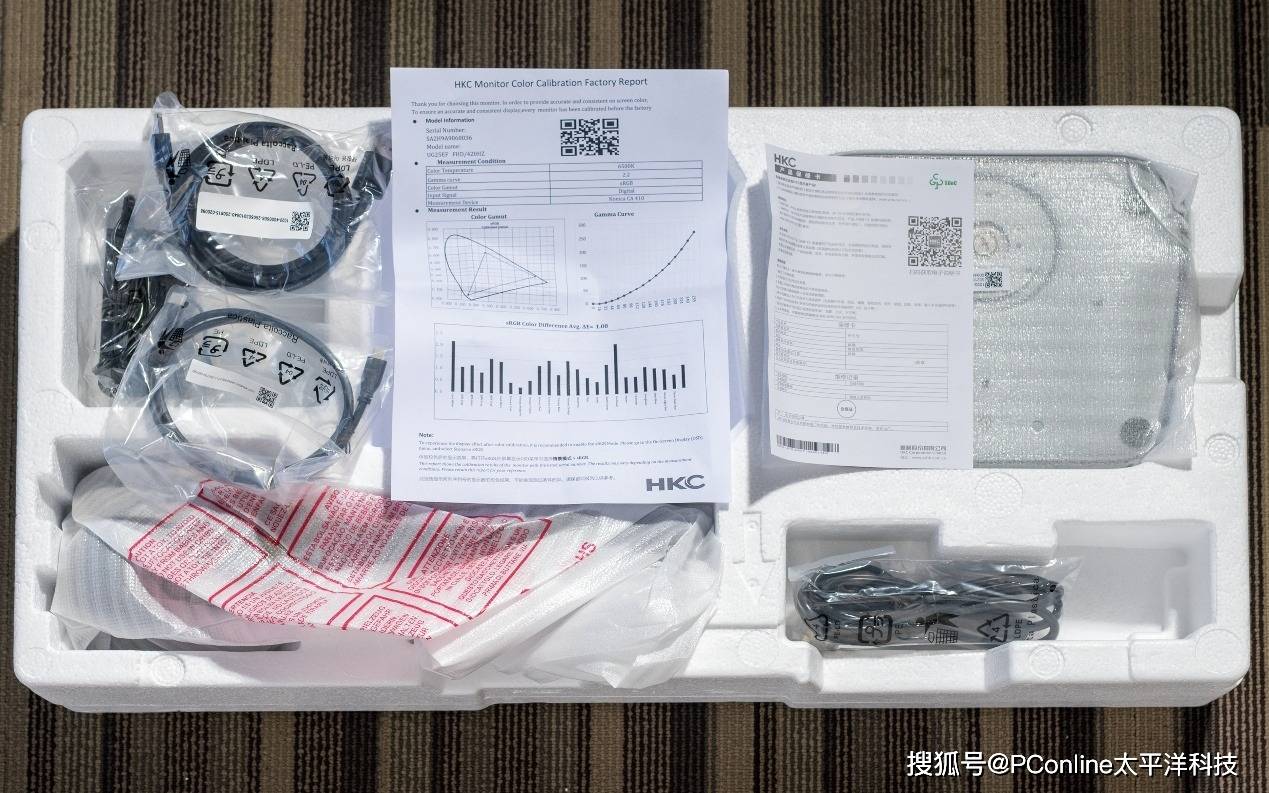 打开包装后,就可以看到HKC UG25EF在包装内部使用了泡沫塑料作为缓冲材料,可以有效保护产品在运输过程中的安全。