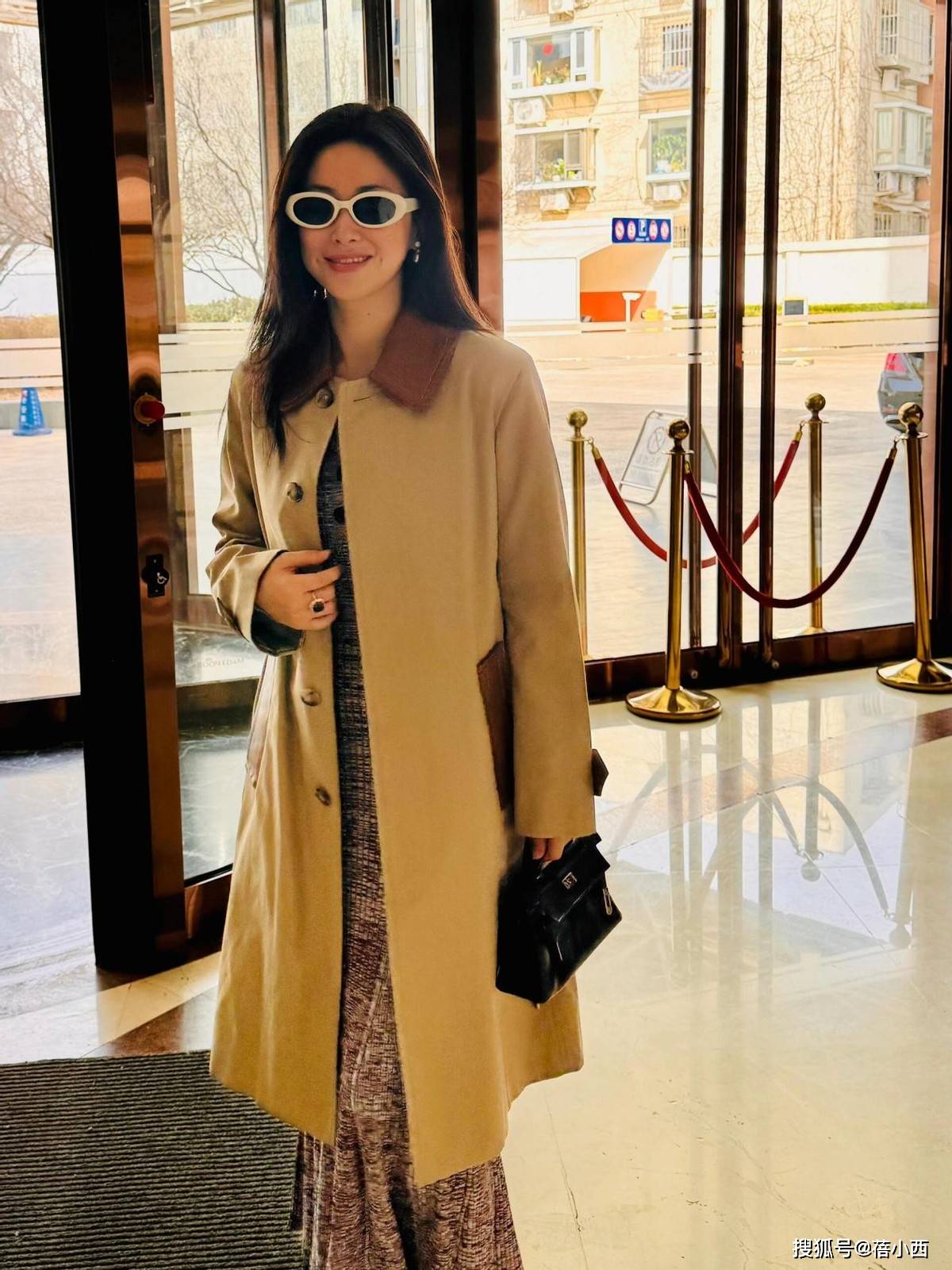 卡其色是风衣的经典色系,自带岁月沉淀的质感。白百何选择的这件长款卡其风衣,版型偏向oversize,肩线的轻微落肩设计弱化了正式感,增添了随性氛围,过膝的长度既能营造出“走路带风”的气场,又能在视觉上拉长身形比例,对各种身高的女性都很友好。