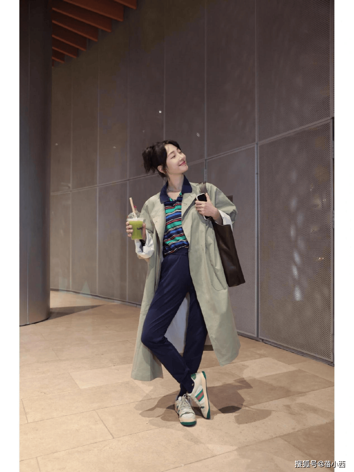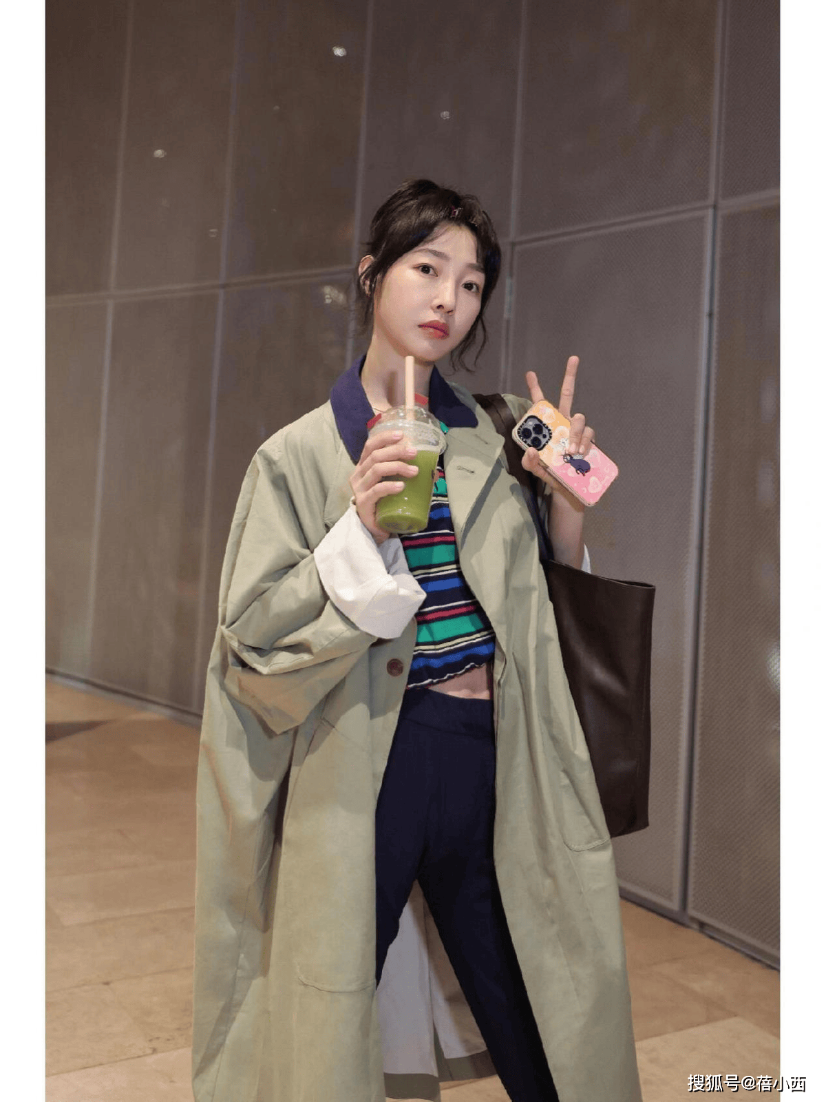 白百何挑风衣的眼光,简直是“松弛感穿搭”的教科书,就说她身上这件浅豆绿色风衣,颜色选得就很妙,不是那种扎眼的高饱和色,也不是沉闷的深色,浅豆绿自带柔和滤镜,衬得肤色透亮,还把秋天的氛围感拉满。