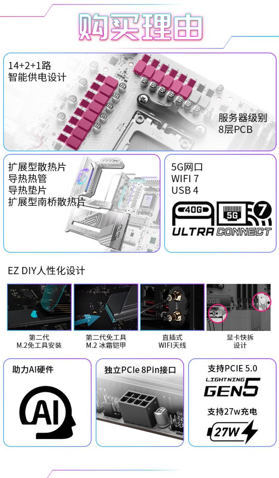 如果说B850是为大众玩家精心烹制的佳肴,那么MPG X870E EDGE TI WIFI就是为那些追求极致、不妥协的硬件发烧友和超频爱好者准备的盛宴。