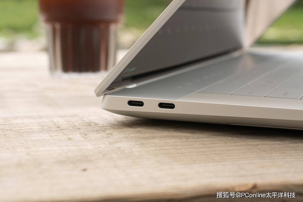 在外部配置上,这台笔记本走的是简洁实用路线。它配备了3个雷电4接口和一个 TF 卡槽,虽然没有传统的USB-A和HDMI,但在高速数据传输和多设备扩展方面依然足够高效,尤其适合本身就习惯全USB-C工作流的用户,比如我平时用雷电扩展坞接显示器、硬盘以及SD读卡器,就能完成视频素材导入,日常使用完全够用。