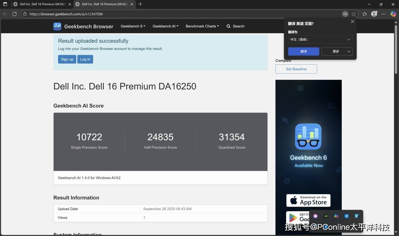 在正式展开实际的 AI 应用测试前,我们用Geekbench AI做了一个基础的性能验证,分别模拟了这台Dell 16 Premium在CPU、NPU 和GPU三种路径下的AI运算表现。可以看到,这套硬件组合展现出了非常清晰的分工优势:
