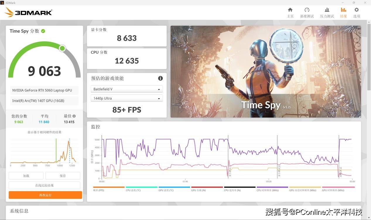 图形性能方面,这套酷睿Ultra 9 285H + RTX 5060 Laptop的组合在理论和实际测试中都展现出了扎实的表现。