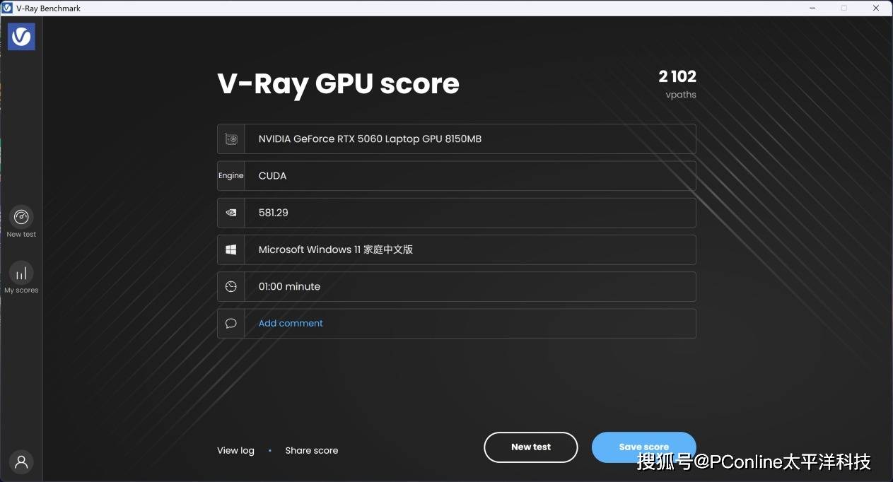 在V-Ray Benchmark中,这颗GPU的CUDA渲染得分达到了2102 vpaths,属于目前移动平台的中高水平,基本能够满足中型场景的图形光线追踪需求。
