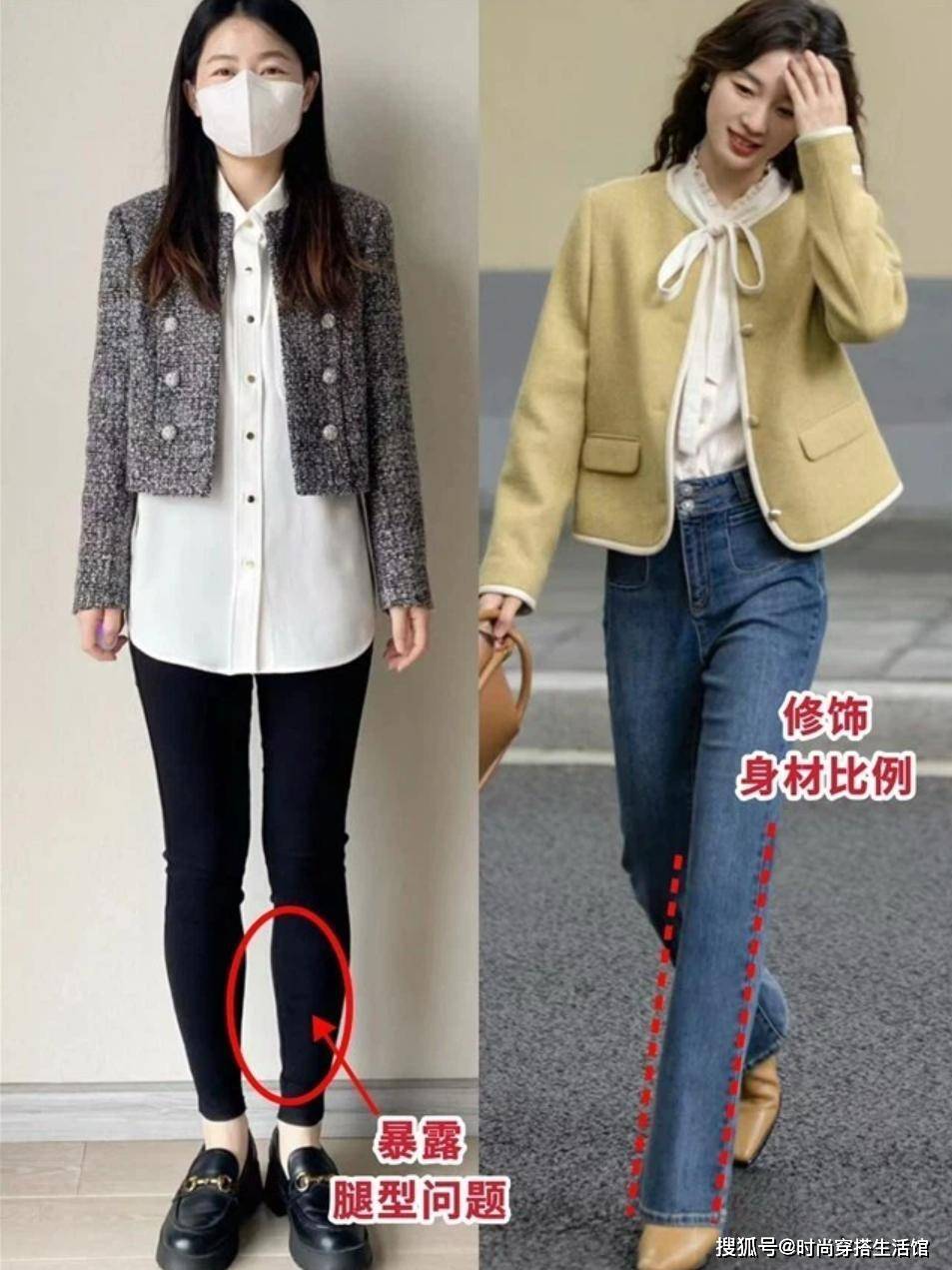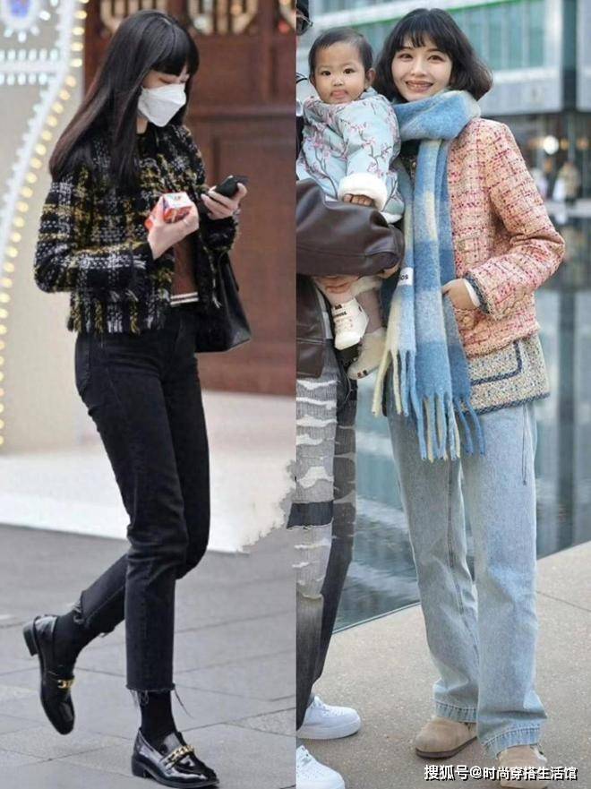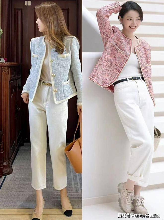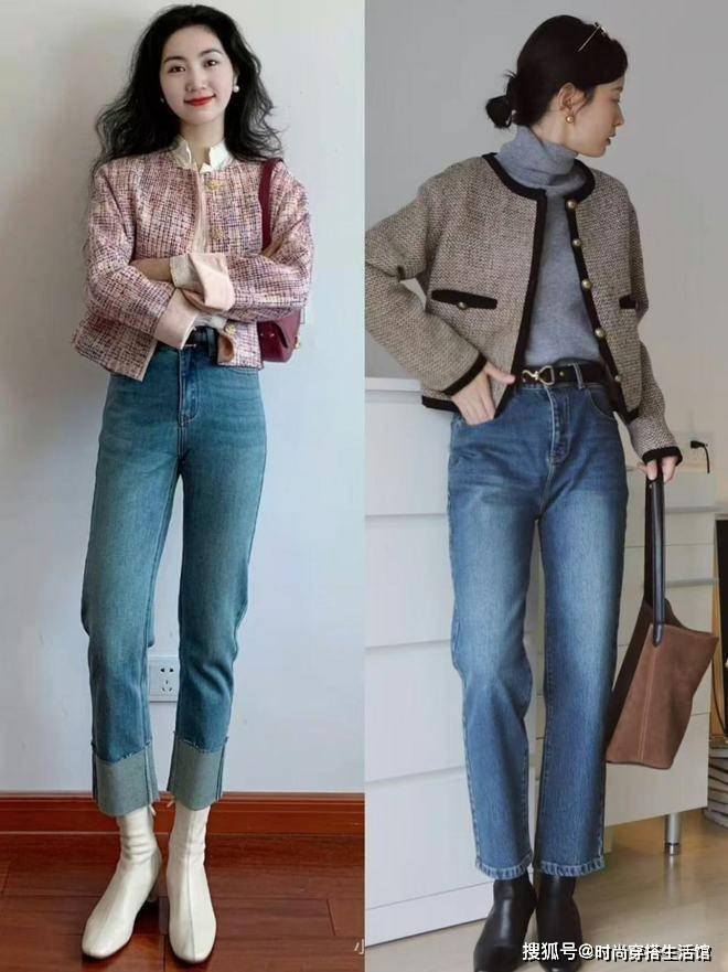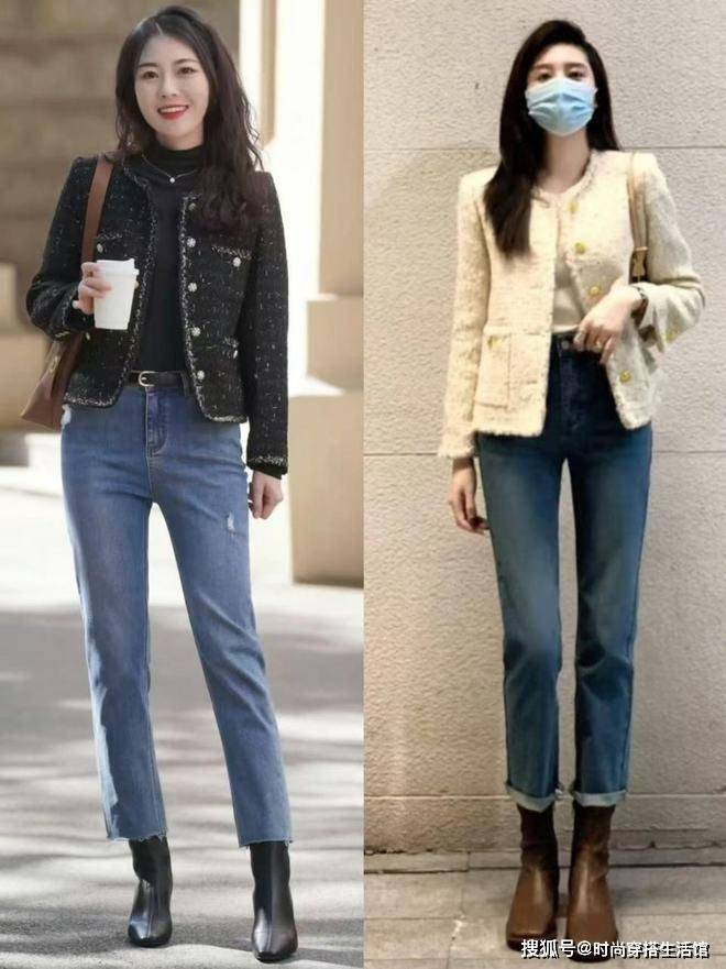 <要点二>秋天早晚温差大,小香风外套+直筒裤就能轻松搞定