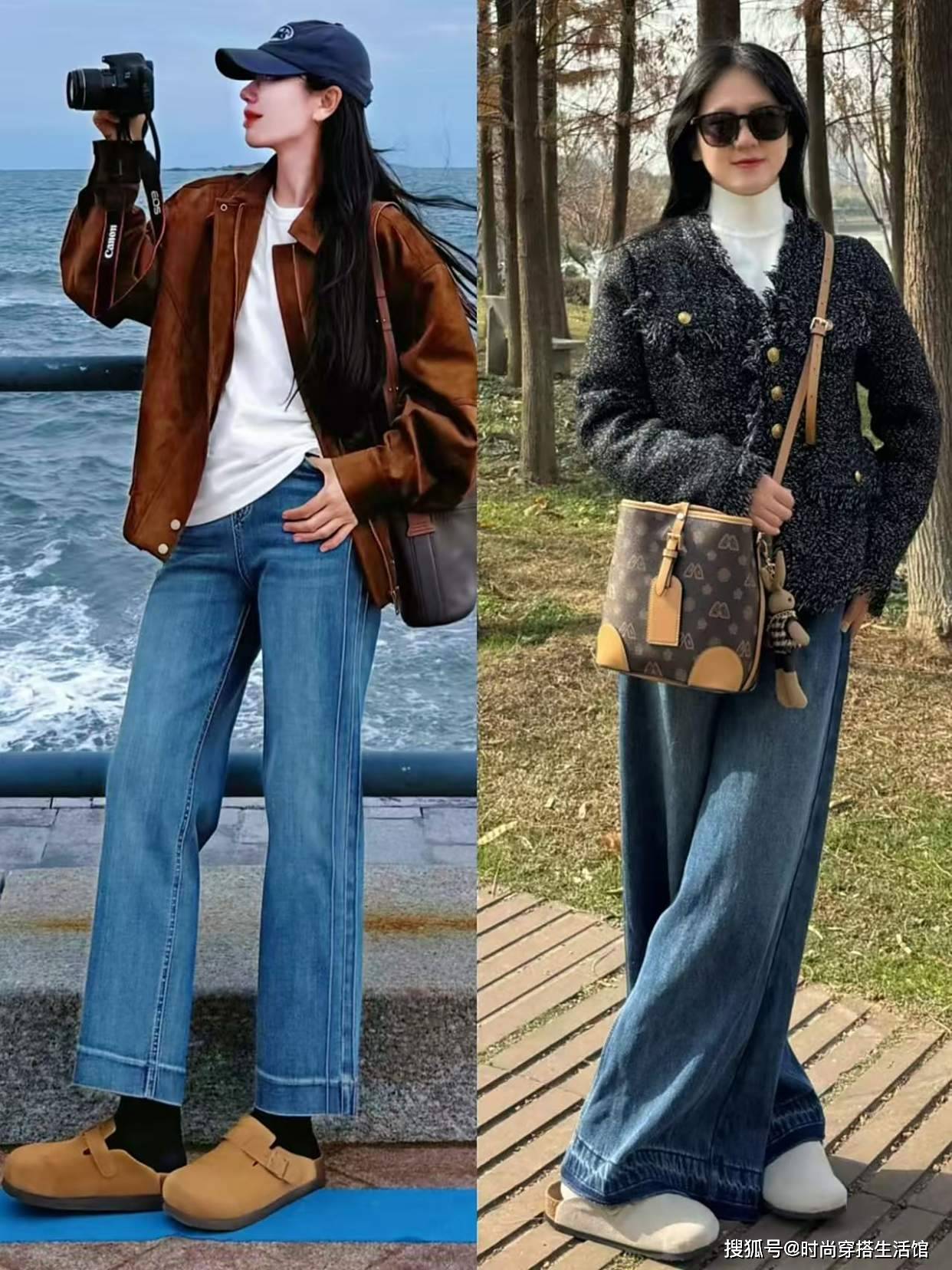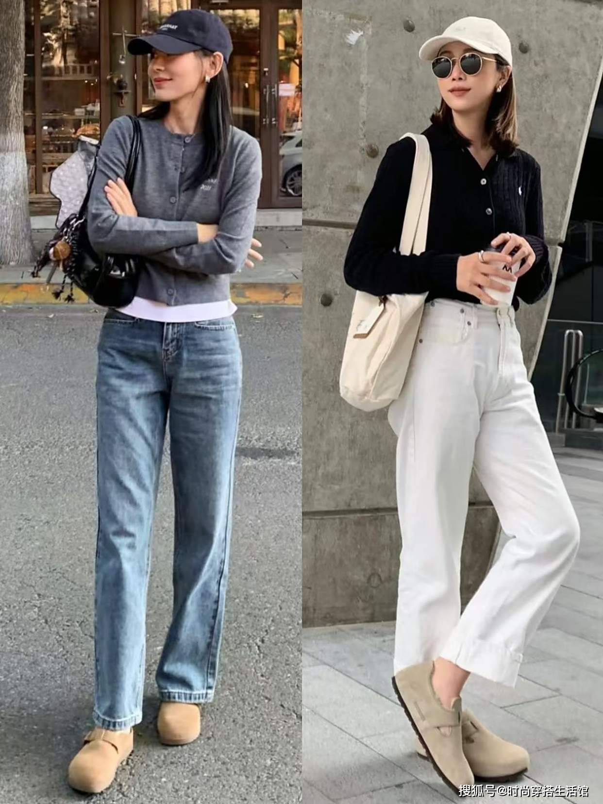 下半身选择搭配一条牛仔阔腿裤,能够完美的塑造出优雅和简约的穿搭风格,但我们选择的牛仔阔腿裤尽量选择高腰的款式,这样才能完美的拉长腿部线条,脚上搭配勃肯鞋还能在视觉上凸显出轻盈层次感。