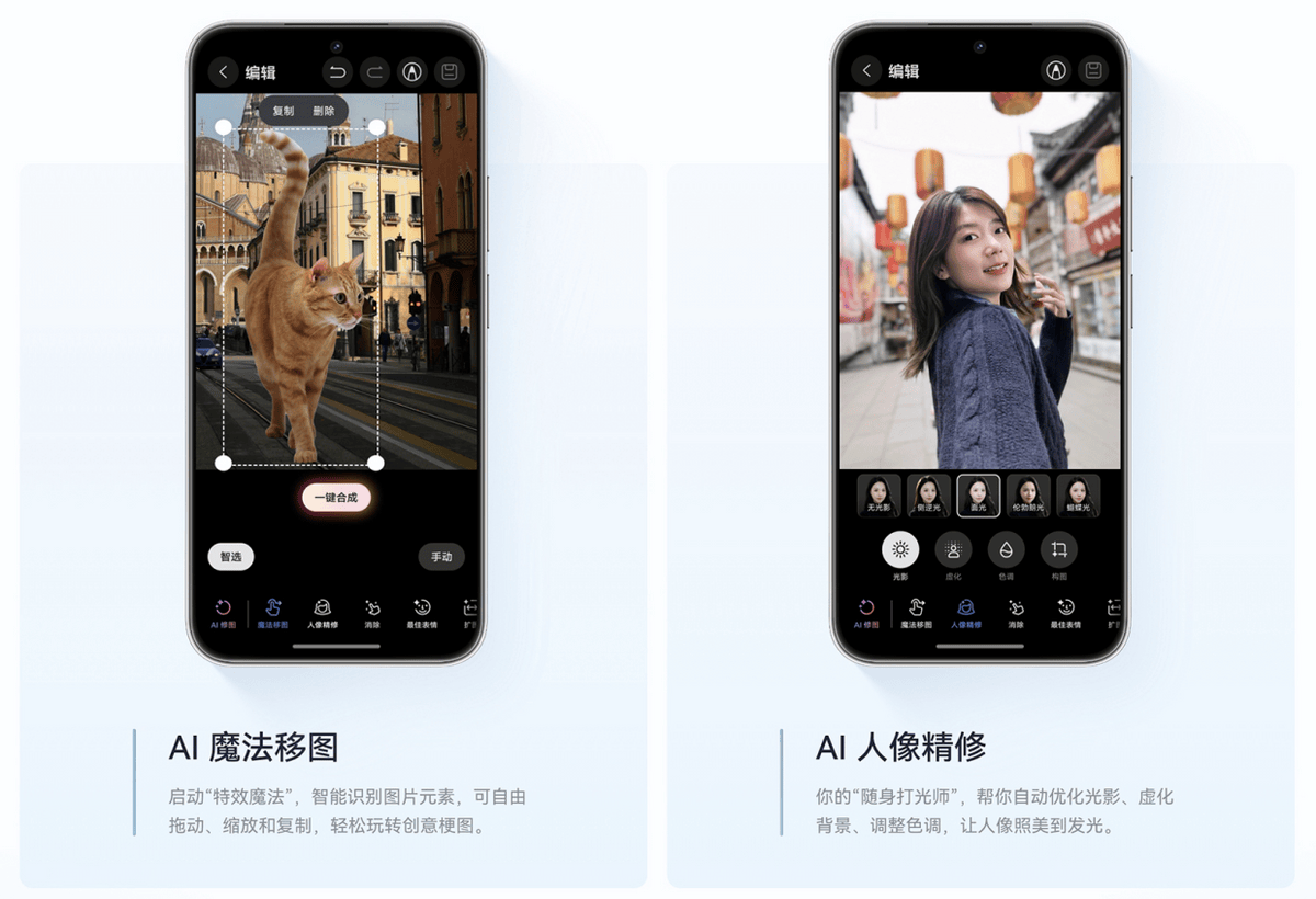 其次,在系统体验层面,它应该会搭载最新的鸿蒙操作系统。该系统备受好评的小艺智能体,将带来更智能、更贴心的全场景服务。同时,针对年轻用户爱玩、爱创作的特点,新机或将支持AI修图等功能。例如,AI修图中的AI魔法移图,可以随意拖动、缩放照片中的元素,重构画面。这极大拓展了社交分享的趣味性与个性化空间。