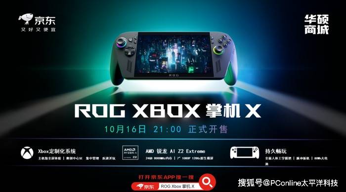 尽掌控,超会玩!首款纯血XBOX掌机,ROG XBOX掌机X于北京时间10月16日15:00正式发布,并于当天晚21:00正式开售,首发价6499元。ROG此次联合微软XBOX团队,实现多点定制,带来Xbox全屏体验、Xbox定制化系统、全新人体工学握把等多项创新设计,实现纯血进化。同时首发搭载AMD锐龙AI Z2 Extreme处理器、配备7英寸1080P 120Hz原生横屏、内置80Wh电池,内外全面升级,赋予玩家全新掌机体验。