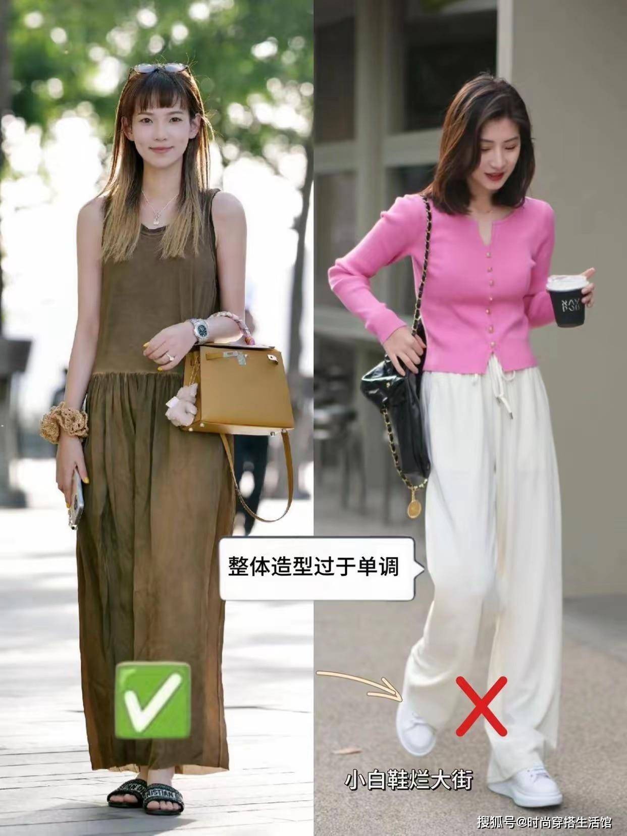原因⑵阔腿裤+小白鞋烂大街,效果显土不时尚