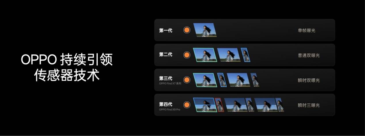 传感器技术革新方面,Find X9 Pro搭载的超动态大底主摄,其曝光技术升级至第四代,首次支持全新的“瞬时三曝技术”,第一次让“实时的高动态”和抓拍完美融合。帮助用户在旅拍途中抓拍沿途美好或氛围感场景时,画面也不会出现明暗割裂,建筑细节与人物动态都能清晰呈现。