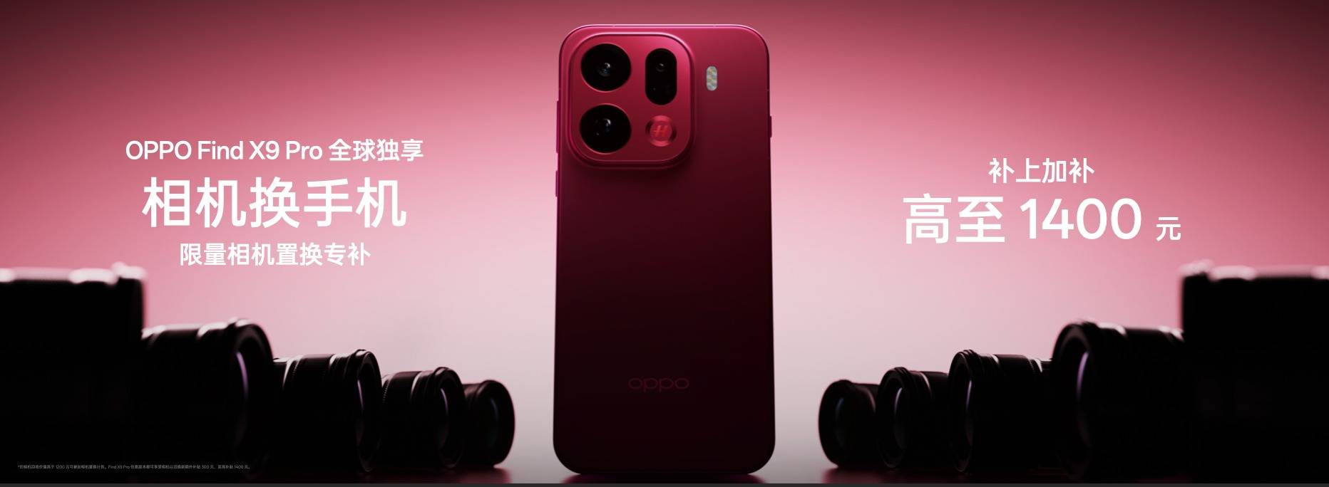 同时,OPPO还推出“相机置换专补”计划,用户可以参与活动将自己手里的相机置换为Find X9 Pro ,可享受官方至高1400元补贴。