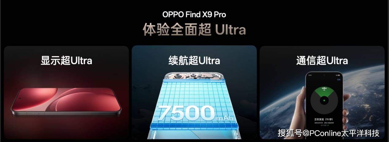 OPPO Find X9系列全系搭载最强天玑旗舰芯片天玑9500 ,配合新一代OPPO潮汐引擎,首发芯片级动态追帧与可编程调度器,大型游戏可5小时满帧运行。OPPO芯链技术更打破芯片与器件壁垒,让3nm旗舰算力赋能影像、屏幕、触控等全场景体验升级。Find X9系列全系标配大容量冰川电池,Find X9为7025mAh,Find X9 Pro更提升至7500mAh。而能实现电池容量的大幅提升,关键在于采用 OPPO 自研的完美球形硅碳材料与长寿算法,支持60个月健康耐用。Find X9系列全系标配自研山海通信增强芯片,实时优化网络,确保旅行中的稳定连接。
