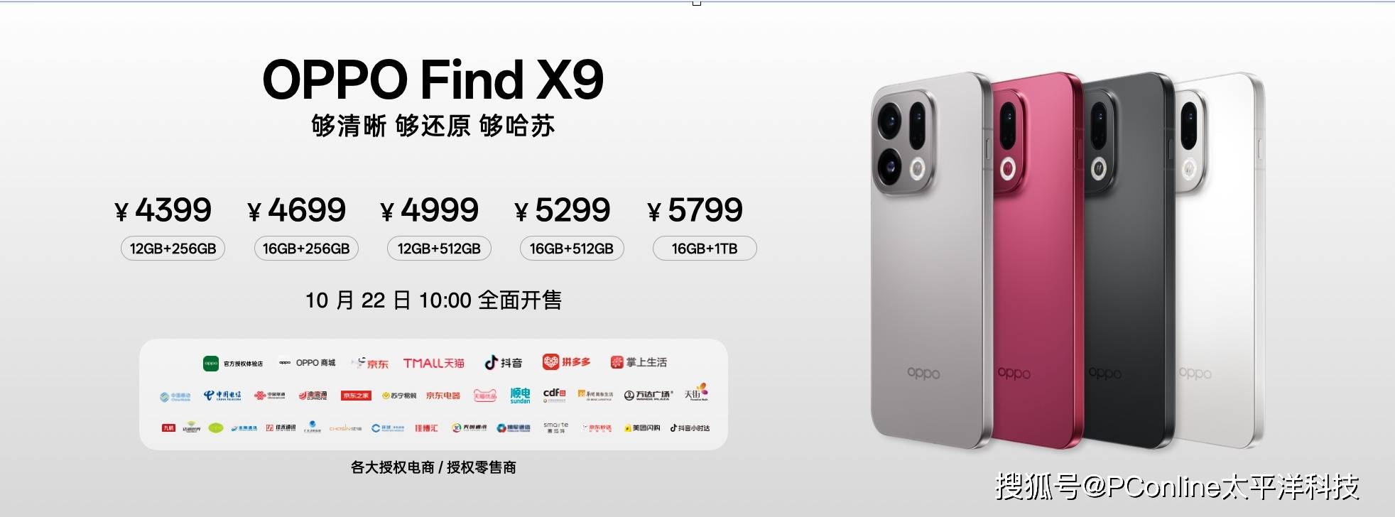 作为OPPO 30周年巨献之作,Find X9系列以画质革命彻底重构影像体验,用全面进化的性能、续航、护眼好屏与更流畅更智慧的系统,精准解决用户核心痛点,强势打造新一代旅拍神器。Find X9系列4399元起售,10月22日正式开售;Find X9 Pro卫星通信版11月开售,并将率先支持eSIM。OPPO与哈苏联合打造的哈苏专业影像套装售价1699元。