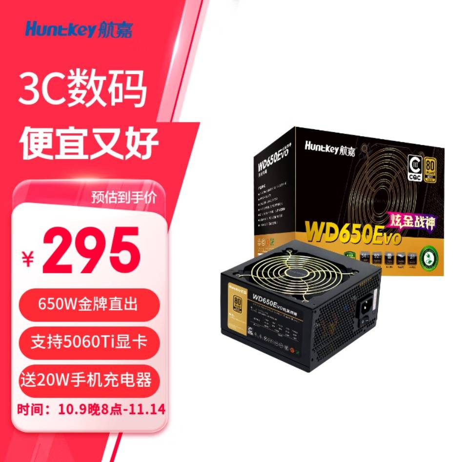 为什么说WD650Evo在双十一节点特别值得入手?首先是其超高的性价比。目前京东平台售价仅295元,并且下单还赠送20W手机快充头一个;其次,航嘉作为国内知名电源品牌,WD系列已有多年积淀,用料扎实,高自动化生产确保品质稳定。相比一些杂牌电源,它的金牌认证和ATX3.1支持,能让你省下电费的同时,提升主机寿命。