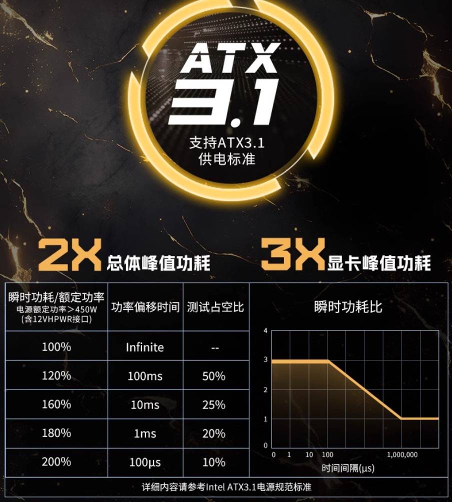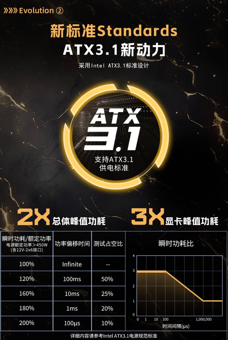 另一个亮点是其对ATX3.1标准的全面支持。这项标准针对现代硬件的峰值功耗需求进行了优化,WD650Evo可以承受2倍额定功率的瞬间峰值,以及3倍显卡瞬间峰值,确保在游戏高负载或突发场景下,整机不会出现掉线或重启的问题。