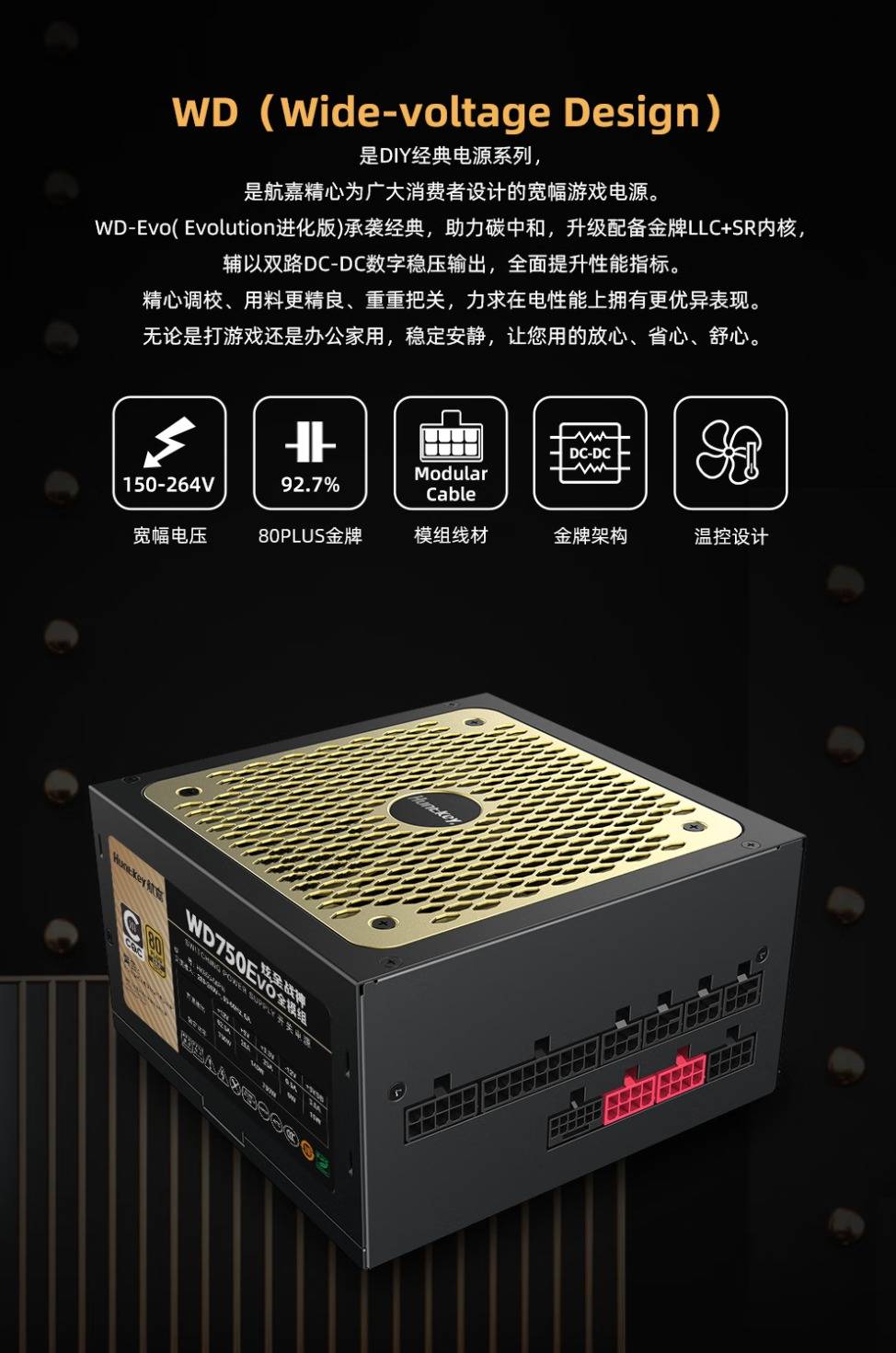 航嘉WD750Evo炫金战神全模组——高端游戏主机的稳定守护者