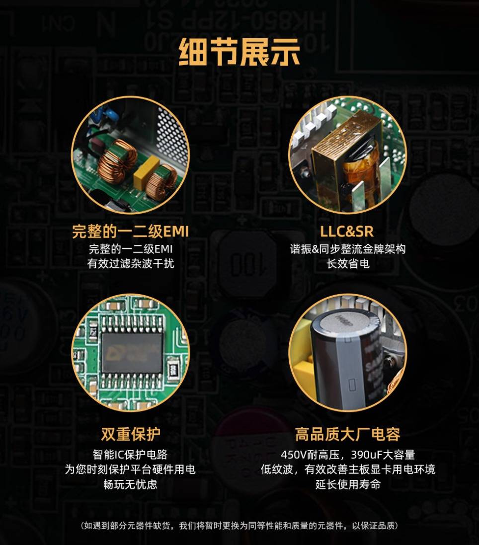 安全保护功能齐全,包括OVP(过电压保护)、OPP(过功率保护)、SCP(短路保护)和OCP(过电流保护),这些硬件级保障,让你双十一买回来的新主机,从源头就免除后顾之忧。