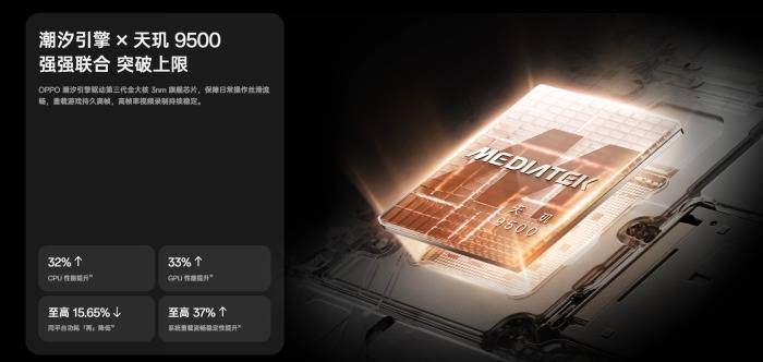 硬件方面,Find X9系列全系搭载天玑9500处理器,配合OPPO自研的潮汐引擎,即使是《原神》这类大型游戏也能持续5小时满帧运行。实测显示,系统在重载场景下的流畅稳定性提升37%,而功耗反而降低13%,真正做到了性能与续航的平衡。