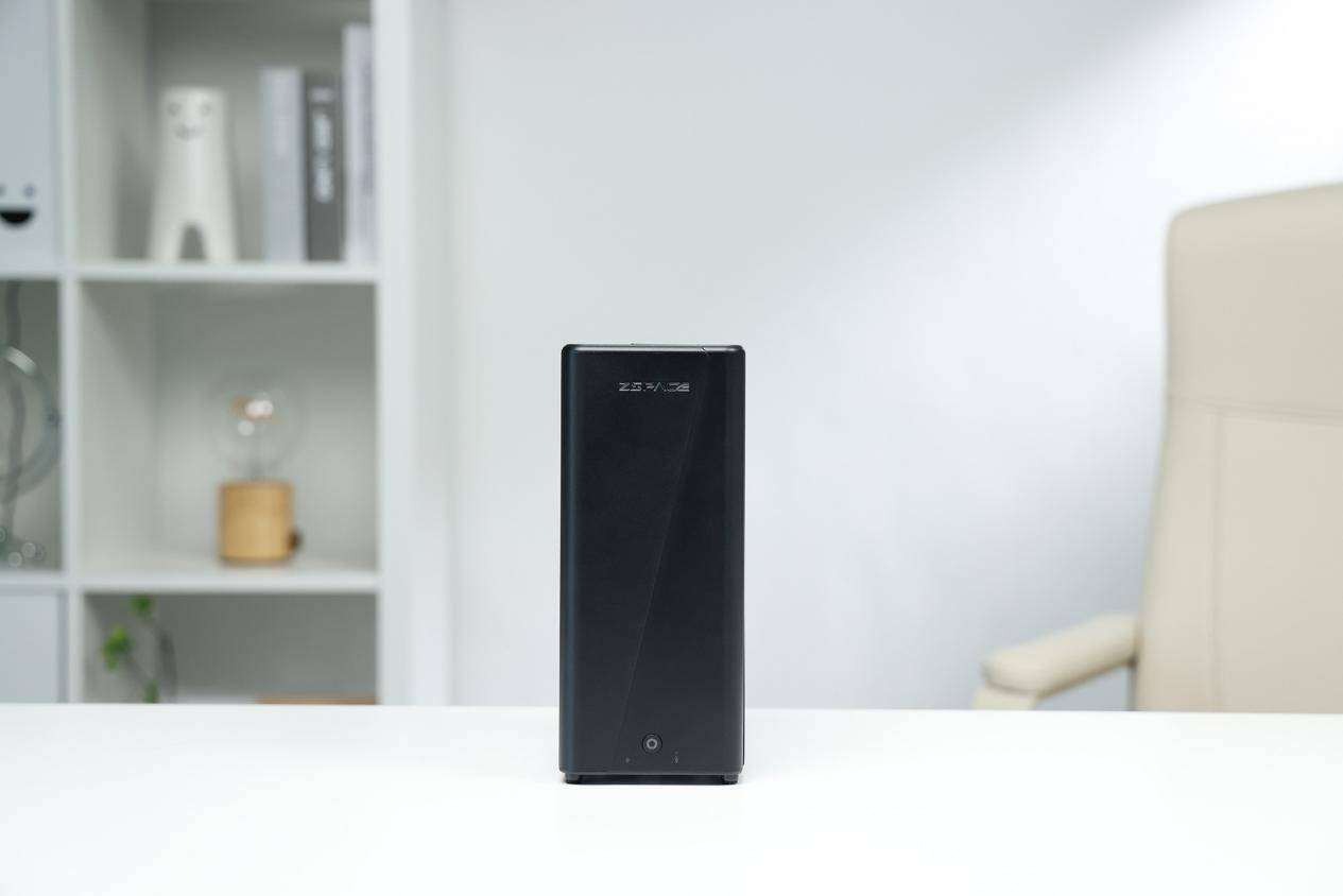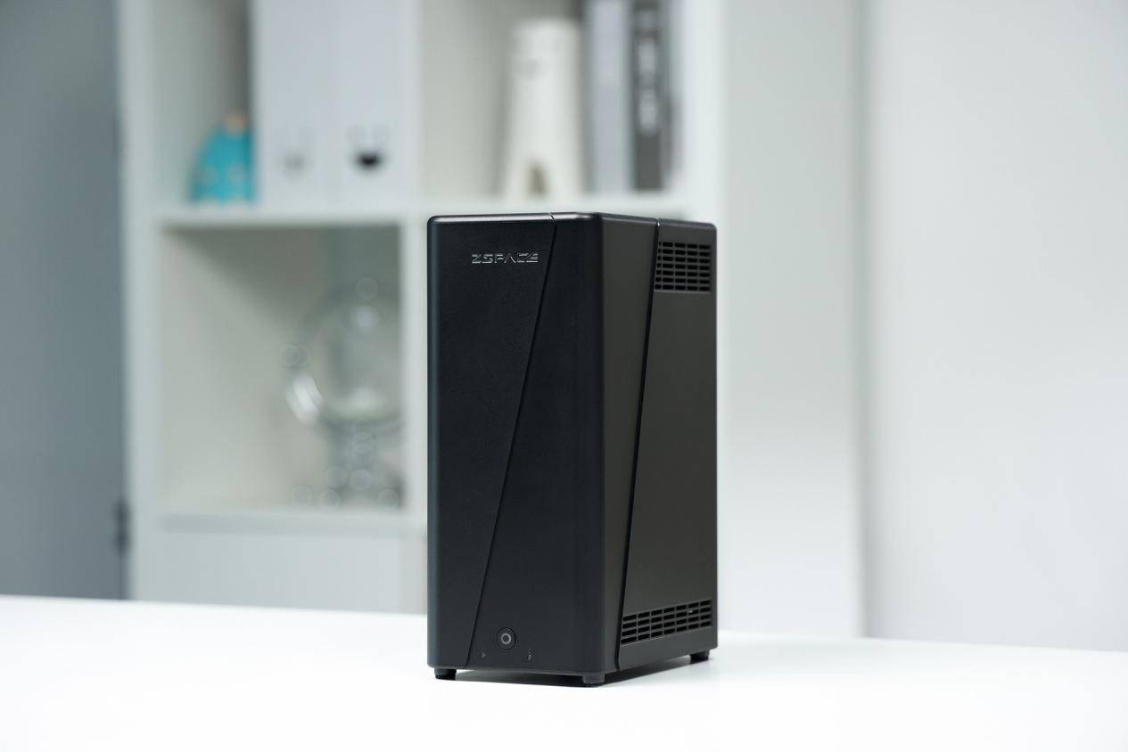极空间Z2Ultra首先在视觉上就打破了人们对NAS设备固有的黑盒子印象。它没有冗余的装饰,通体采用深邃的哑光黑,配合利落的机身线条,呈现出一种恰到好处的科技美学。这种设计语言让它具备了隐身能力,无论置于书架一角,还是电视柜之上,它都能安静地融入其中,成为家居环境里一个和谐而精致的存在。