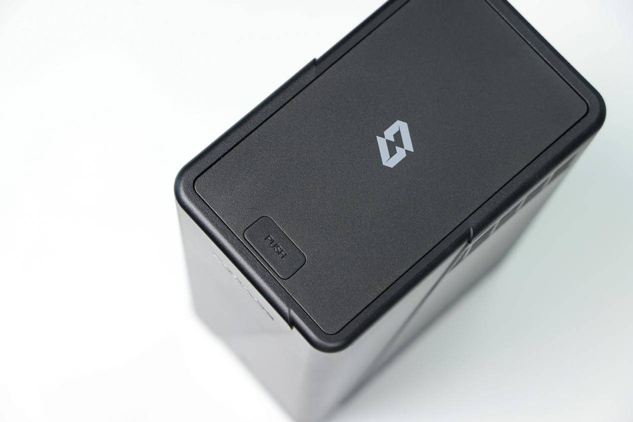 将装好硬盘的支架顺着滑轨推入机身,安装便告完成。这种直观的设计,将传统NAS繁琐的安装步骤,简化为了几分钟内即可完成的友好体验,对初次接触的用户十分友好。