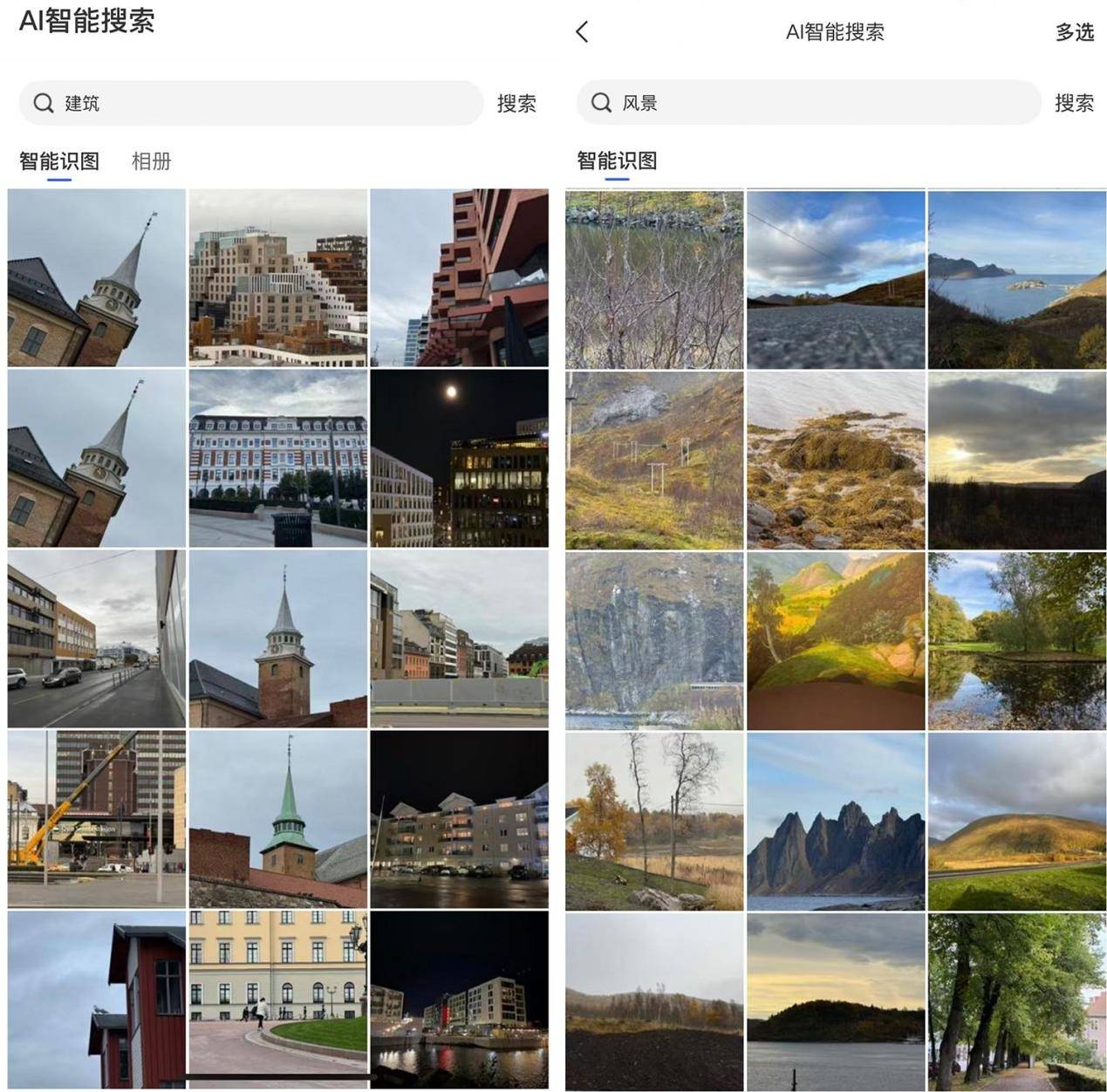 其次是智能分类与搜索。极相册2.0的AI识图能力,早已超越了简单的“猫、狗、汽车”。它能识别的场景和物品细致入微。比如分别搜索“建筑,风景”,瞬间,所有与之相关的美景都呈现在眼前。