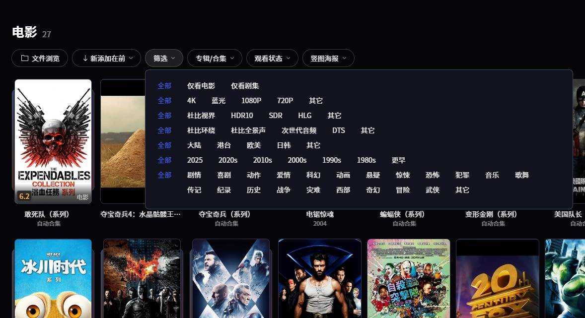 而最让笔者喜欢的是它的分类和筛选功能,可以按类型、年份、地区、甚至导演和演员来快速找到想看的影片。这种掌控自己影视库的感觉,实在是太棒了!