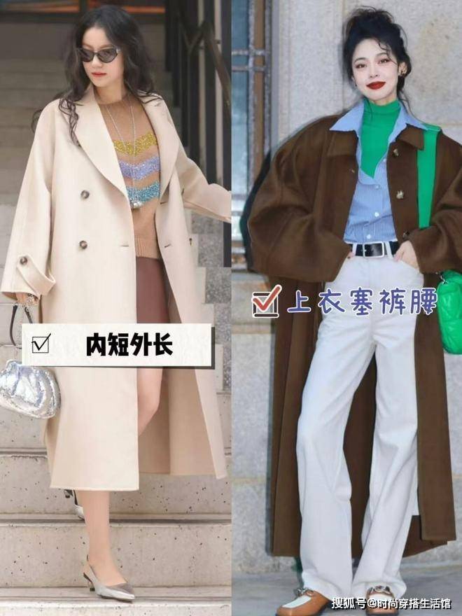 方法②宽松大衣配腰带,能拉高腰线凸显比例