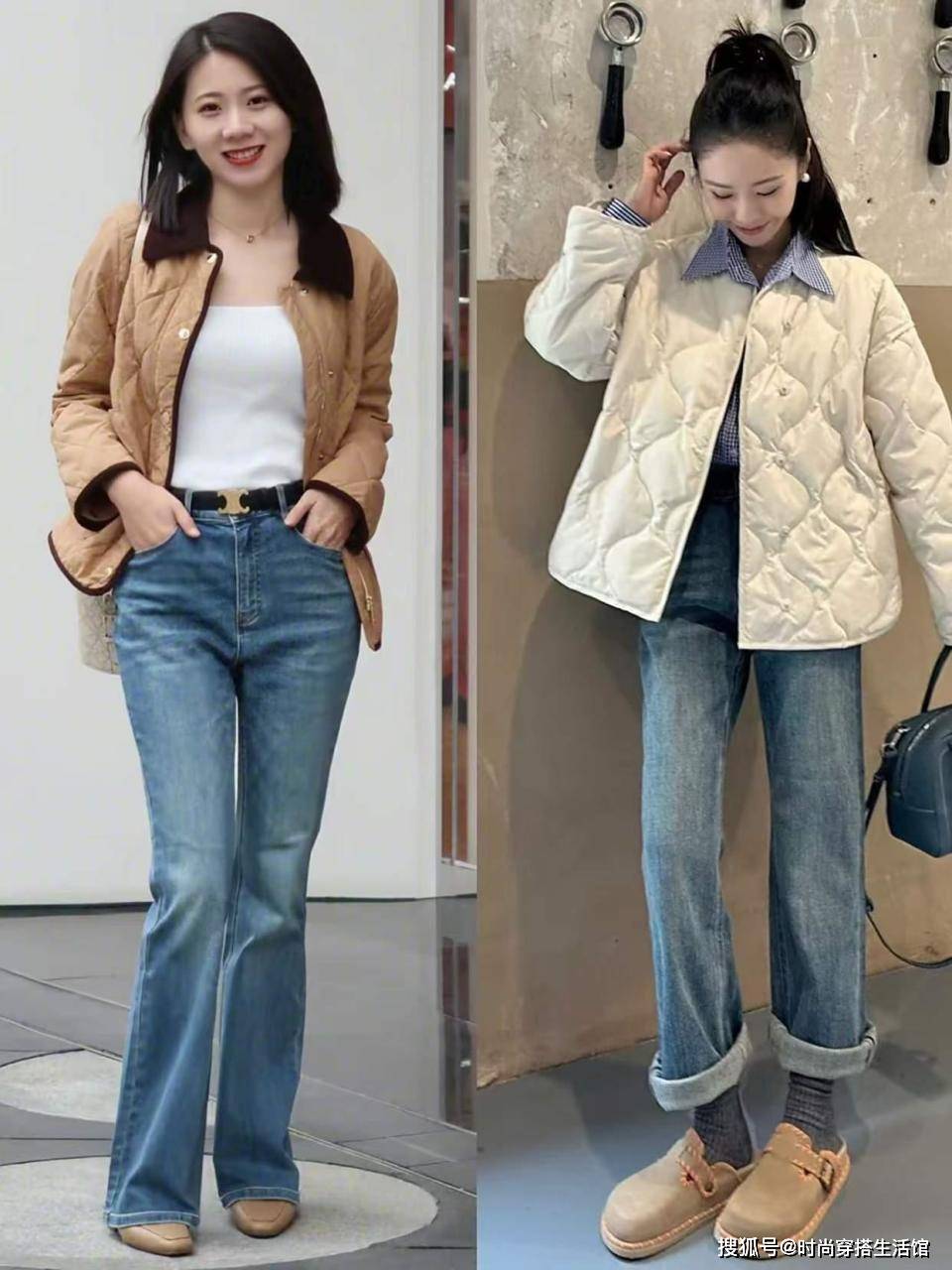 秋冬季节我们穿“奶奶棉服”的时候,可以搭配牛仔裤,毕竟牛仔裤作为裤子中的“常青树”,整个造型会更加的经典和百搭,搭配上合身的“奶奶棉服”,能够完美的衬托出我们身上的不足,同时还能衬托出优雅和干练的气质,超级适合小个子或者是腿型不完美的女性穿。
