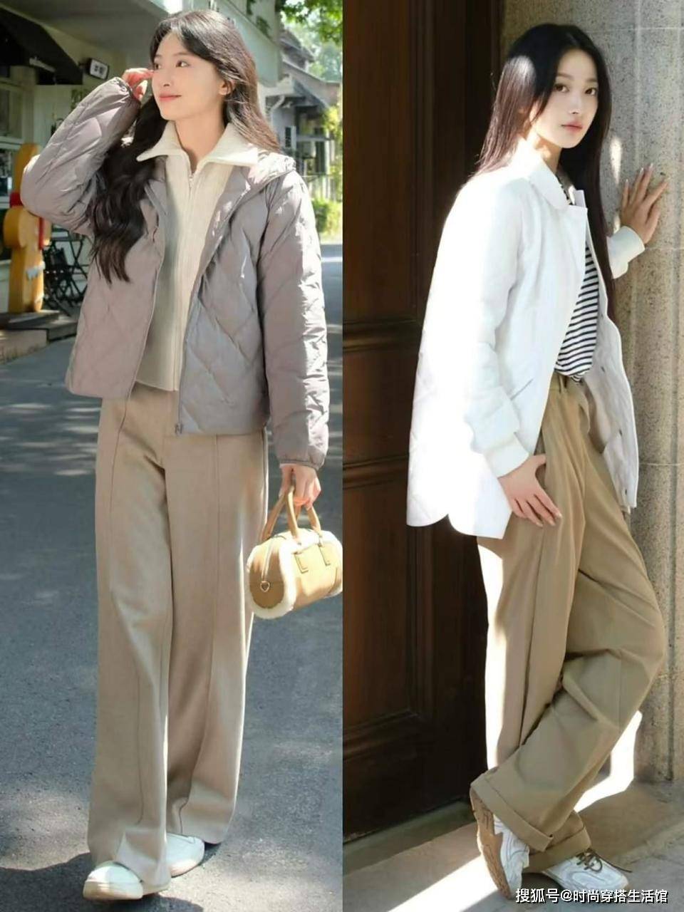 最后对于腿粗或者腿型不完美的女性,我们穿“奶奶棉服”还可以搭配阔腿裤,对于秋冬季节来说我们最好是可以选择毛呢和针织材质的阔腿裤,毕竟北方有些城市下雪了,选择轻薄的阔腿裤保暖性会不强,搭配上合身的“奶奶棉服”,风格上会更加的慵懒和随性。