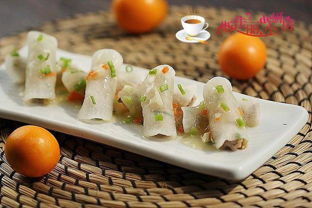 推荐菜谱【 蒸白萝卜卷】 原料: 白萝卜 肉馅 姜末 胡萝卜丁 葱花 料酒 生抽 油盐 水淀粉