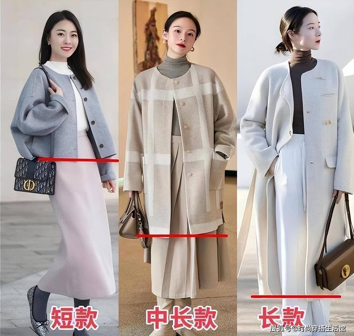 大衣的长度应当根据我们个人的身材来挑选,比如小个子女生应该选择在臀部附近的短款,中等身材可以尝试在小腿附近的中长款大衣,而高个子女性则可以挑战一下这种在脚踝附近的长款奶奶大衣,依据你的身高去挑选一般不会出错,而且能够有效地扬长避短。