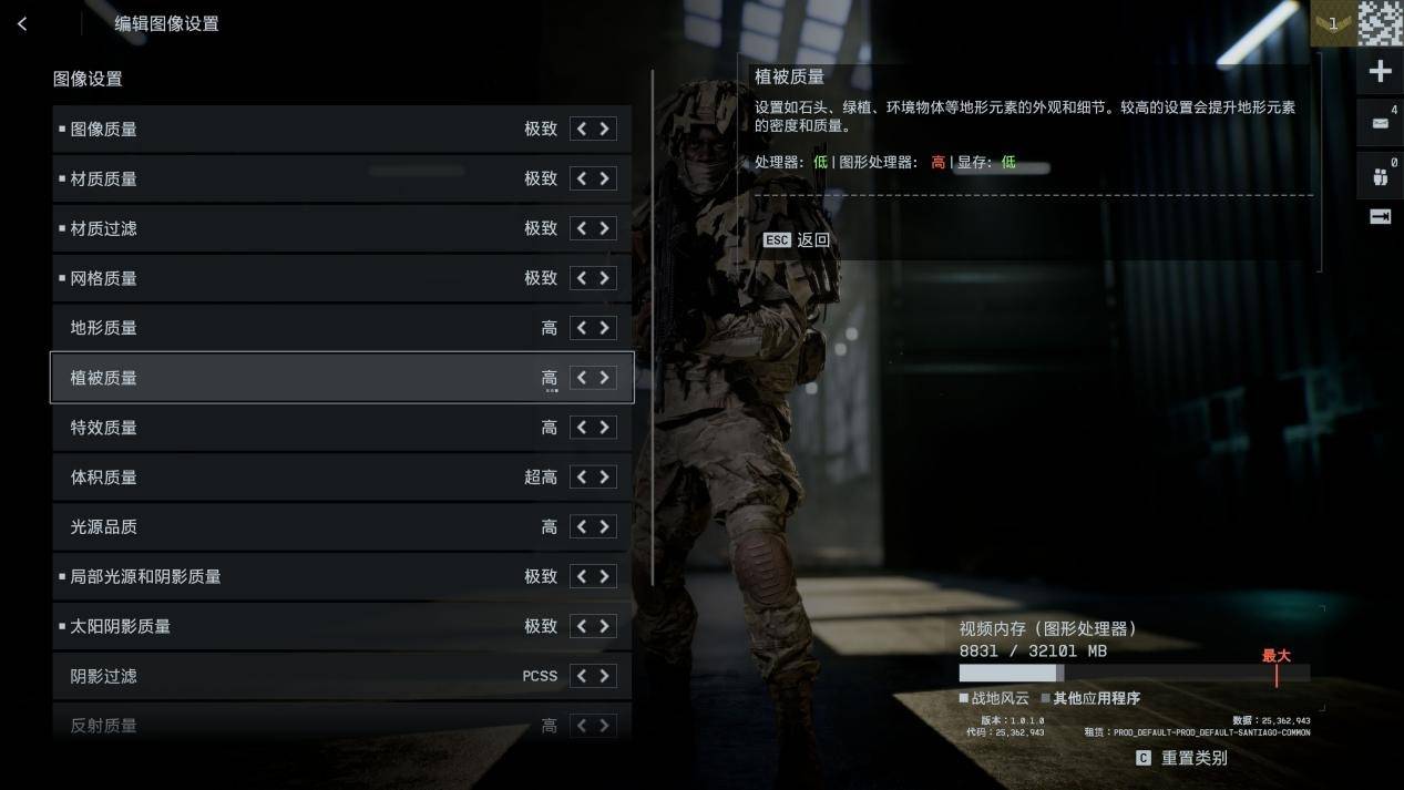 图像质量设定为“极致”档位,其余档位为超高、高、中等,以及低。高价玩家可以对每个选项自行“自定义”设置,但一般玩家建议优先选择“极致”预设来体验游戏故事,FPS玩家建议选择“超高”或高来体验游戏对战模式。