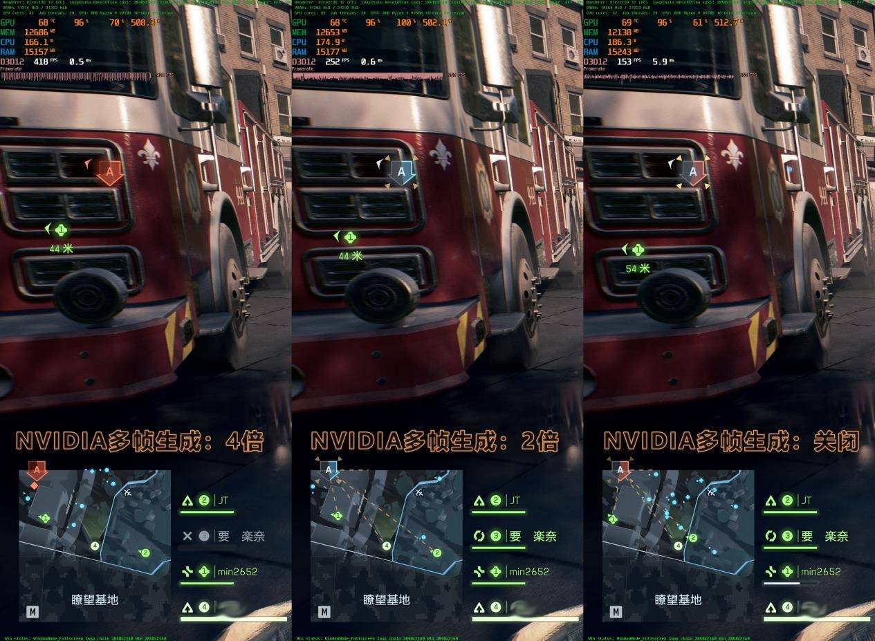 DLSS 4多帧生成技术开启之后,到底帧数到底有多少差别?拿NVIDIA GEFORCE RTX 5090 D为例,多帧生成关闭的时候,游戏帧数仅为153 FPS,而开启2倍帧生成时,帧数已经达到252 FPS,而4倍多帧生成之后,帧数更是达到418 FPS,游戏流畅度已经超出想象。所以建议各位游戏玩家使用RTX 50系列GPU开启DLSS 4多帧生成。