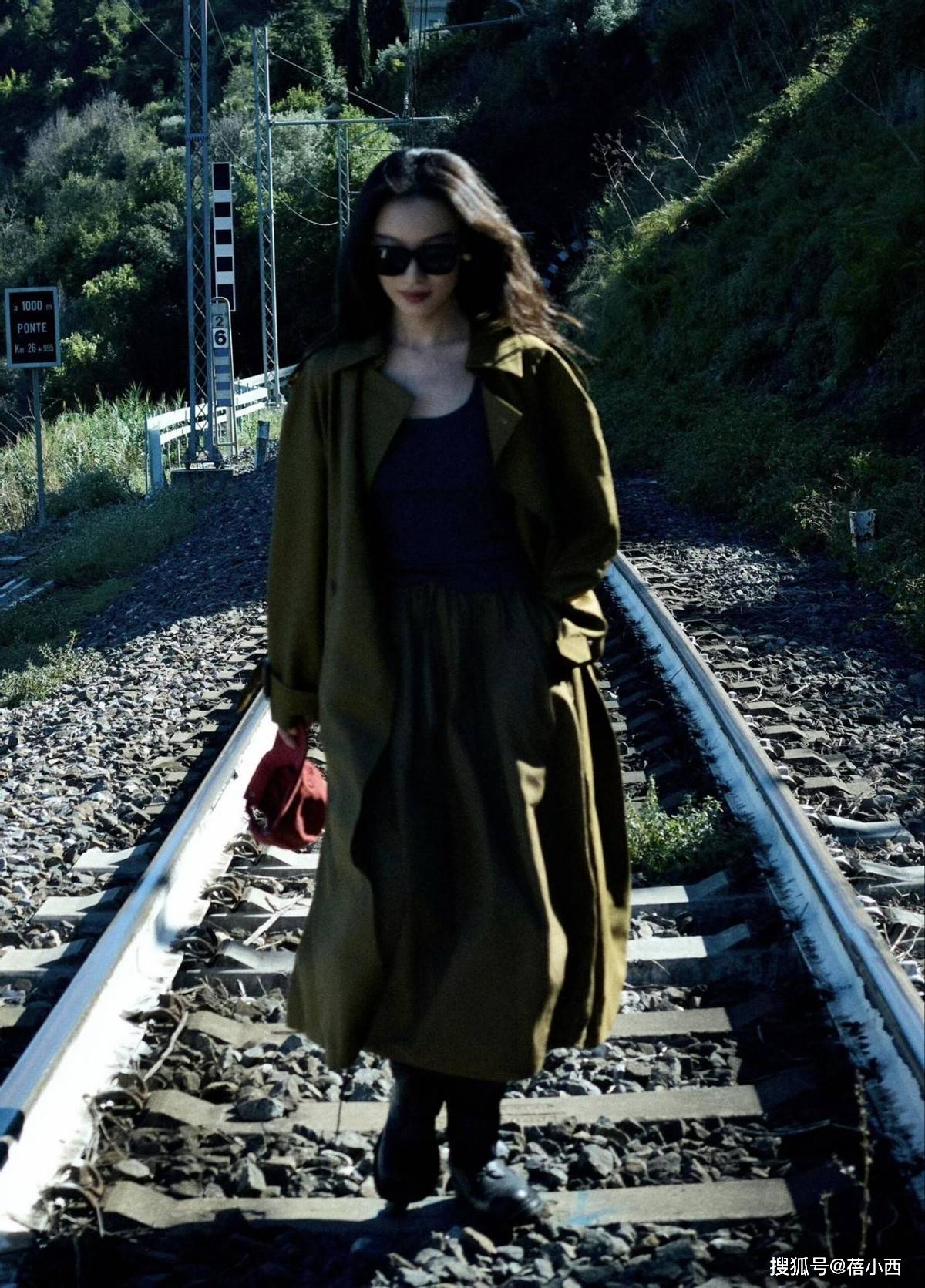 军绿色风衣内搭背心,这个组合简直绝了!风衣的硬朗感被背心的随性中和,整个人看起来既帅气又不失女人味,而且倪妮选择了一款oversize版型的风衣,走路带风的气场直接拉满。内搭的背心是修身款,完美展现了身材曲线,这种松紧结合的穿法特别显瘦,秋天气温良好的时候都可以这么穿。