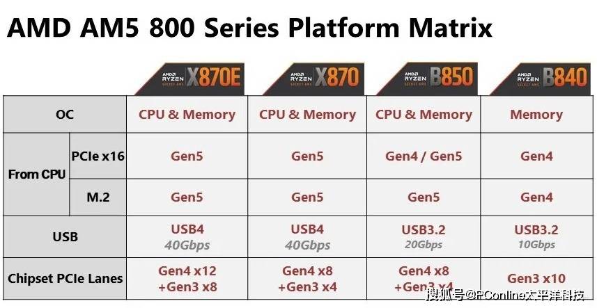 2025年初,AMD正式推出了全新芯片组B850,它将全面取代B650。该芯片组继承了AM5平台对PCIe 5.0的全速支持,同时在USB扩展和南桥I/O方面进行了优化,能完美适配Ryzen 9000系列的AI算力和游戏性能。与旗舰X870相比,B850更注重性价比,目标客户为中高端DIY用户,特别是热衷于高频内存的超频爱好者。